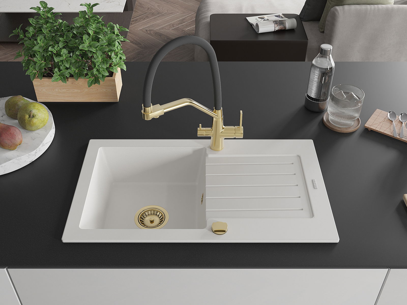 A mosogató felülete ellenáll a foltoknak és a elszíneződésnek, amelynek köszönhetően könnyű megtisztítani és hosszú ideig megtartja színét. Esztétikai és gyakorlatilag kiegészítve minden konyhát.