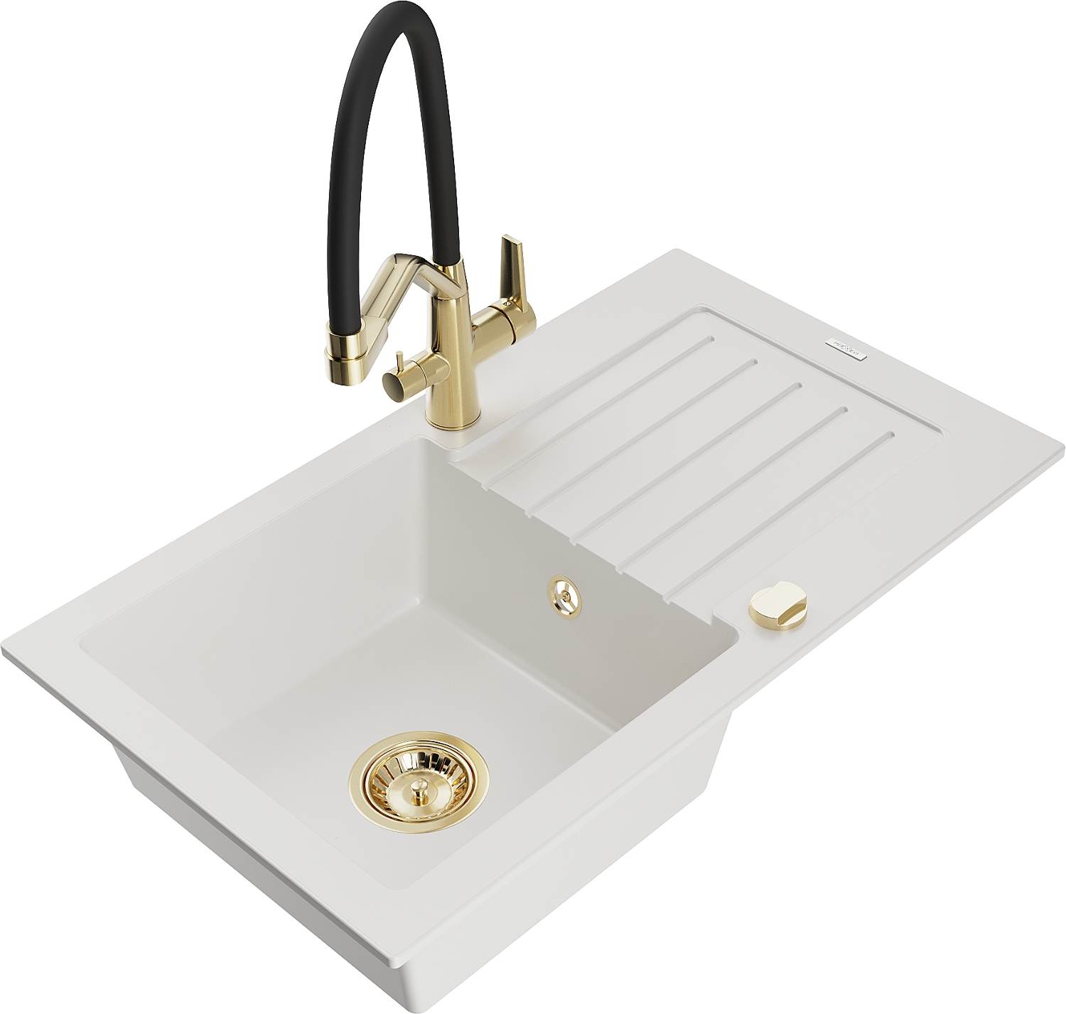 Mexen Pablo 1-medencés gránit mosogató csepegtetővel és Duo konyhai csapteleppel, fehér - 6510-20-671701-57-G