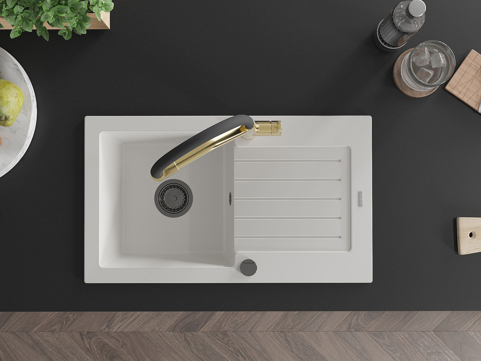 A mosogató felülete ellenáll a foltoknak és a elszíneződésnek, amelynek köszönhetően könnyű megtisztítani és hosszú ideig megtartja színét. Esztétikai és gyakorlatilag kiegészítve minden konyhát.