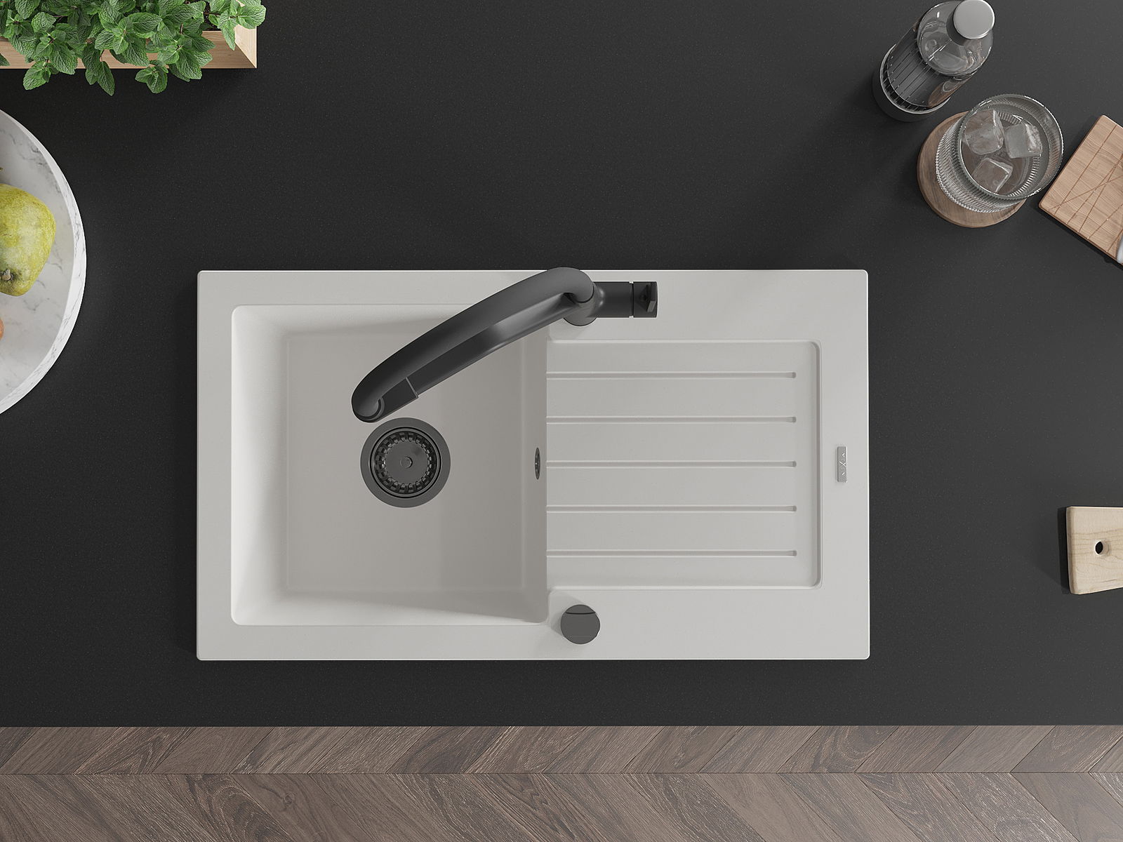 A mosogató kiváló minőségű gránitból készül. Ez egy elegáns és mindenekelőtt minden konyhához praktikus kiegészítés, stílusától függetlenül. A kiváló minőségű és a gránit tartósság biztosítja a sok éves használatát.