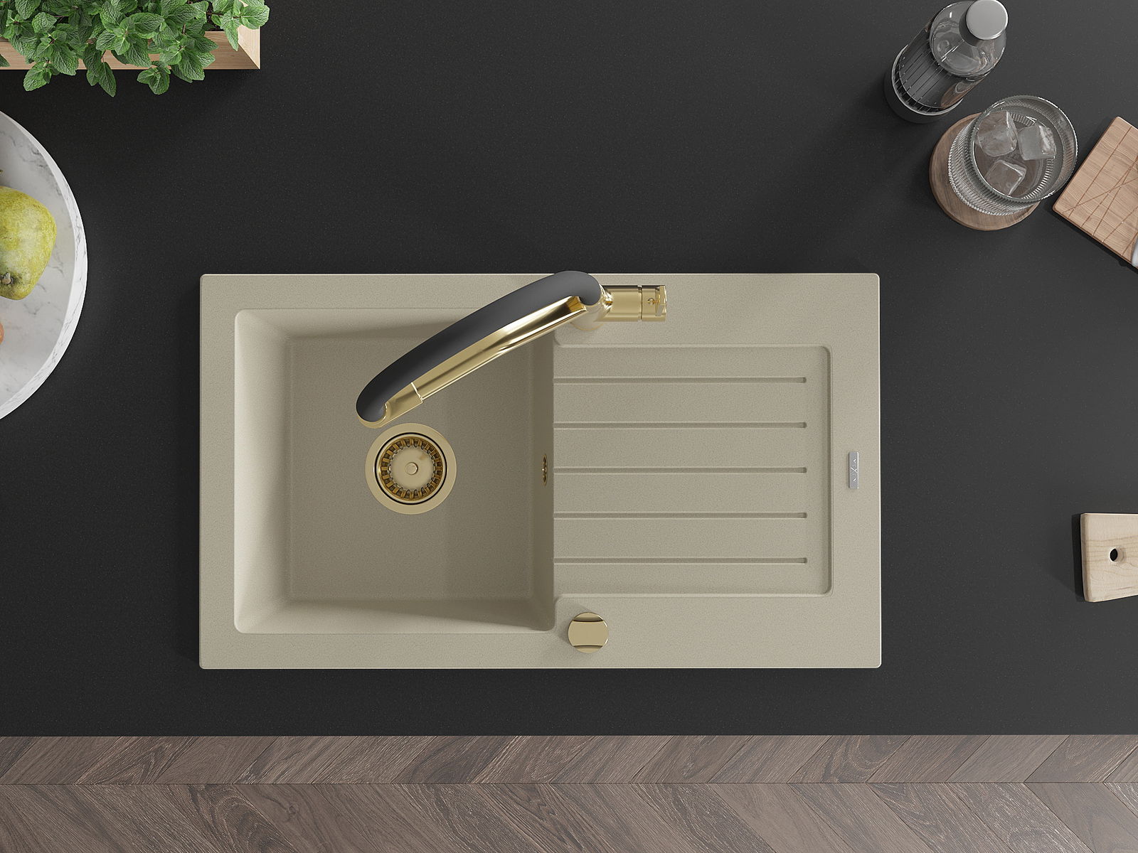 A mosogató felülete ellenáll a foltoknak és a elszíneződésnek, amelynek köszönhetően könnyű megtisztítani és hosszú ideig megtartja színét. Esztétikai és gyakorlatilag kiegészítve minden konyhát.