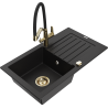 Mexen Pablo gránit mosogató 1-medencés csepegtetővel és Duo konyhai csapteleppel, bézs - 6510-69-671701-57-G