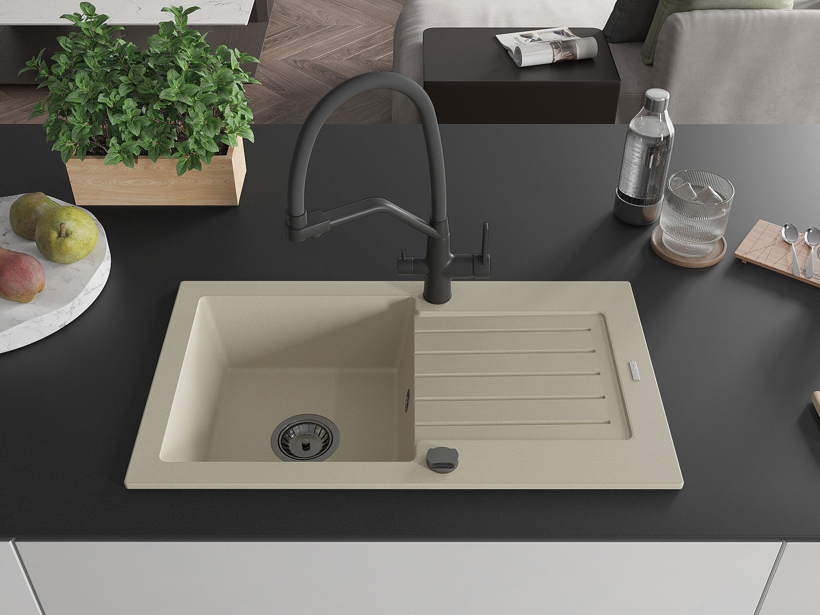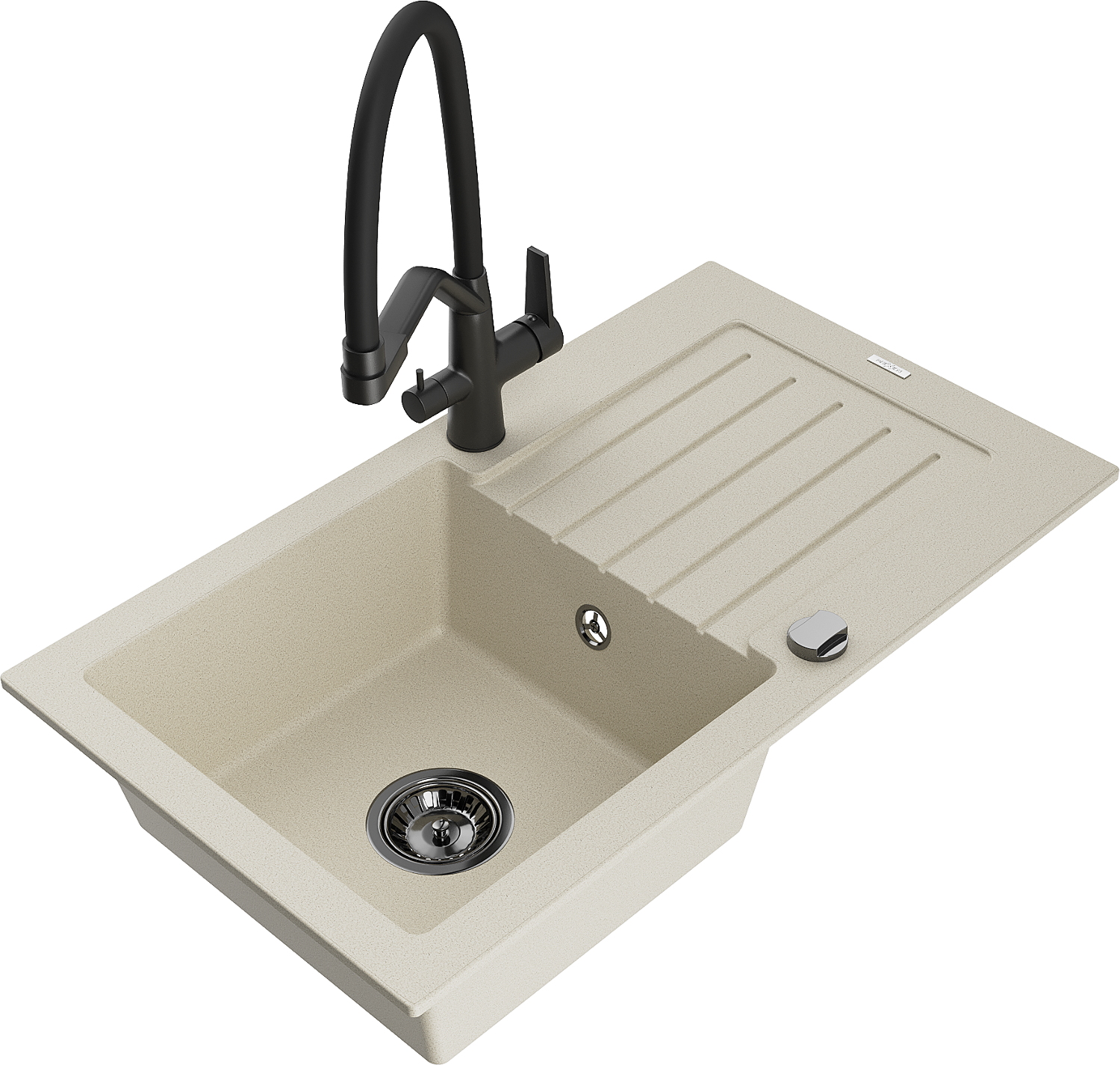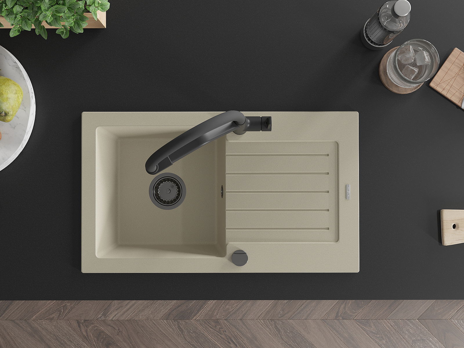 Mexen Pablo 1-medencés gránit mosogató lefolyóval és Duo konyhai csappal, bézs - 6510-69-671701-70-B