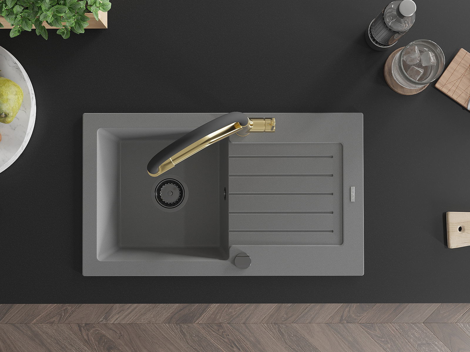Mexen Pablo gránit egytálcás mosogató lefolyóval és konyhai csappal Duo, szürke - 6510-71-671701-57-B