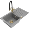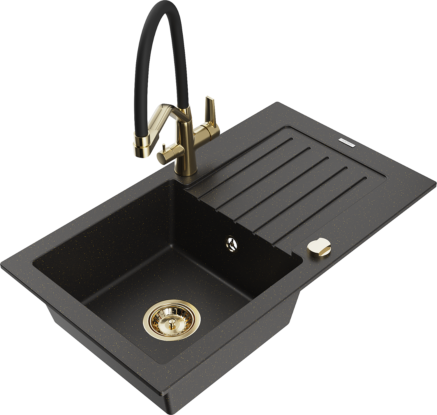 Mexen Pablo 1-medencés gránit mosogató csepegtetővel és Duo konyhai csapteleppel, fekete/arany metál - 6510-75-671701-57-G