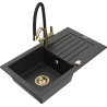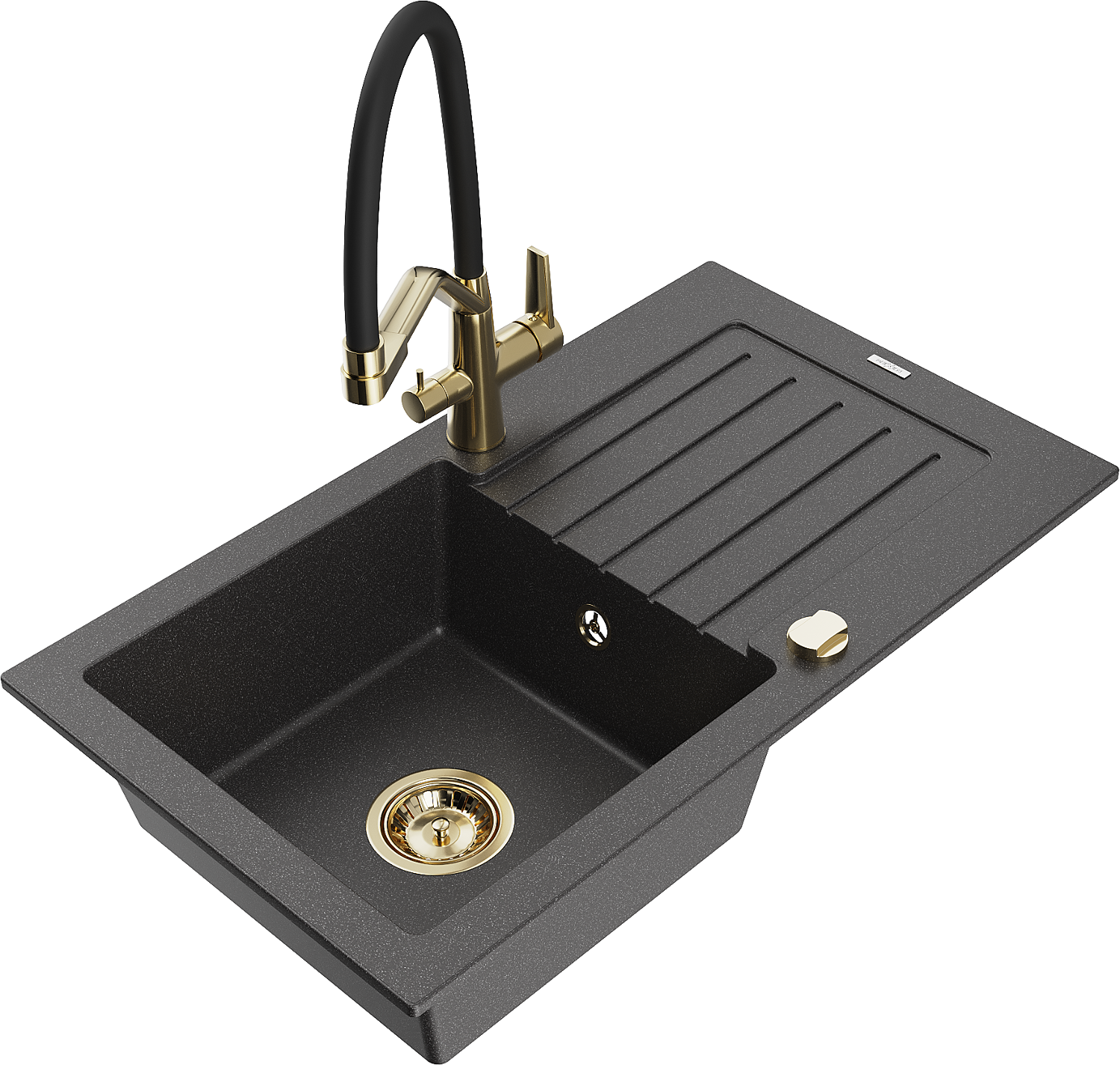 Mexen Pablo gránit mosogató 1-medencés csepptálcával és Duo konyhai csappal, fekete pöttyös - 6510-76-671701-57-G