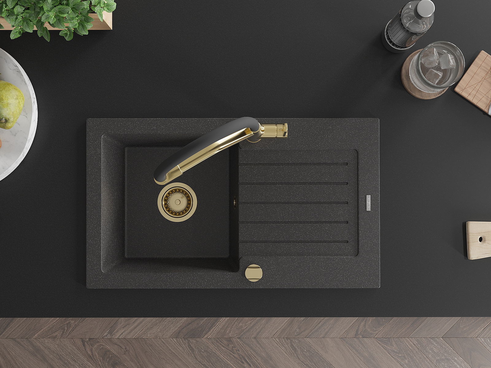 A mosogató kiváló minőségű gránitból készül. Ez egy elegáns és mindenekelőtt minden konyhához praktikus kiegészítés, stílusától függetlenül. A kiváló minőségű és a gránit tartósság biztosítja a sok éves használatát.