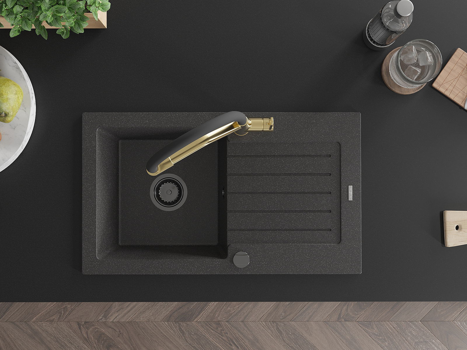 A mosogató kiváló minőségű gránitból készül. Ez egy elegáns és mindenekelőtt minden konyhához praktikus kiegészítés, stílusától függetlenül. A kiváló minőségű és a gránit tartósság biztosítja a sok éves használatát.