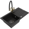 Mexen Pablo 1-medencés gránit mosogató csepegtetővel és Duo konyhai csappal, fekete pöttyös - 6510-76-671701-57-B