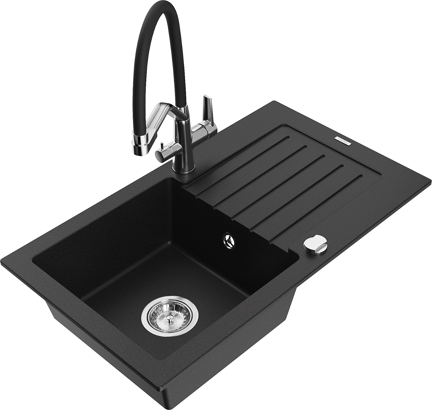 Mexen Pablo gránit egytálcás mosogató csepptálcával és Duo konyhai csapteleppel, fekete - 6510-77-671701-07