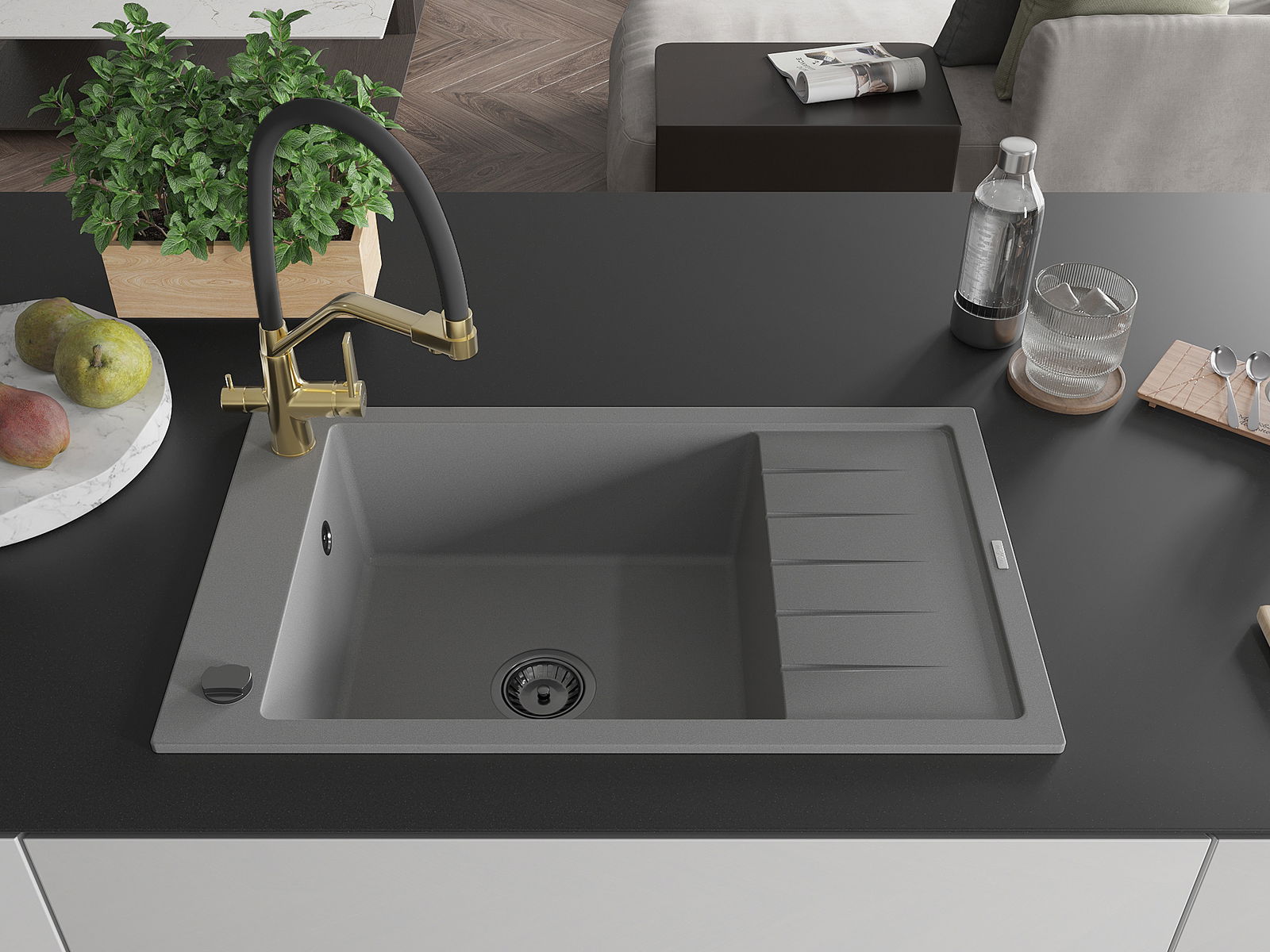 Mexen Elias 1-medencés gránit mosogató csepegtetővel és Duo konyhai csapteleppel, szürke - 6511-71-671701-57-B