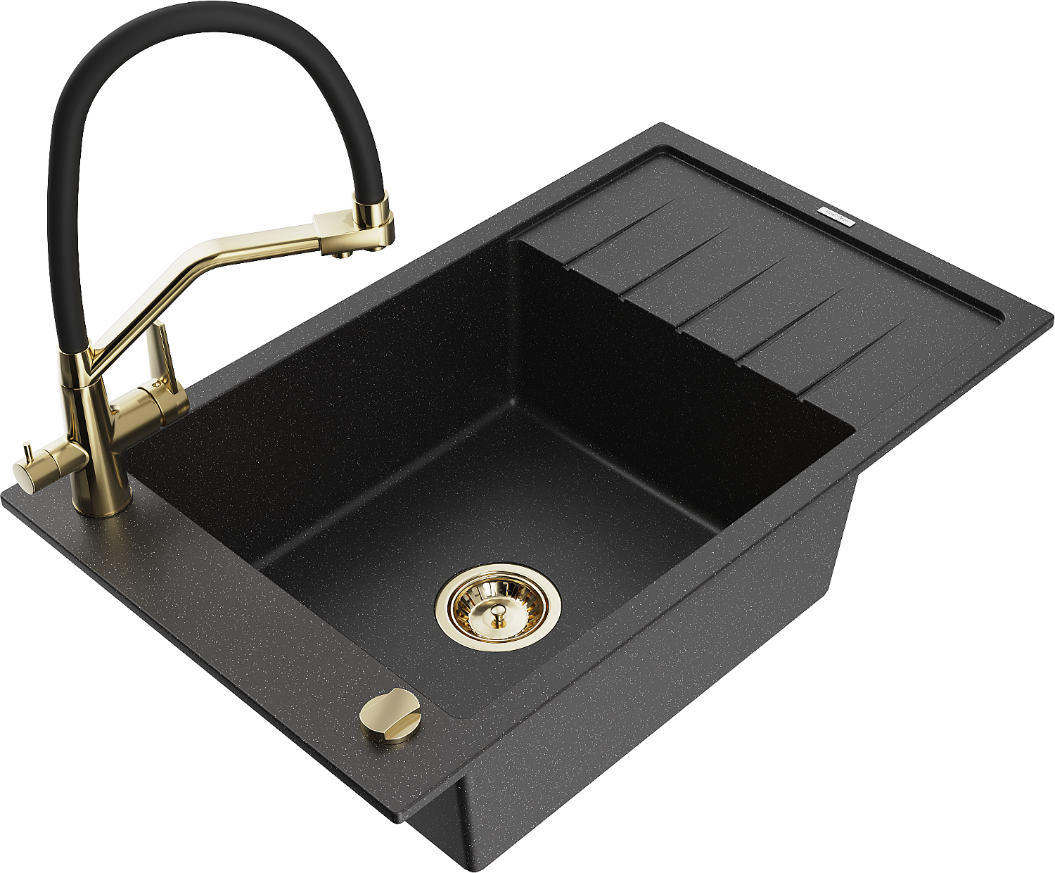 A mosogató kiváló minőségű gránitból készül. Ez egy elegáns és mindenekelőtt minden konyhához praktikus kiegészítés, stílusától függetlenül. A kiváló minőségű és a gránit tartósság biztosítja a sok éves használatát.