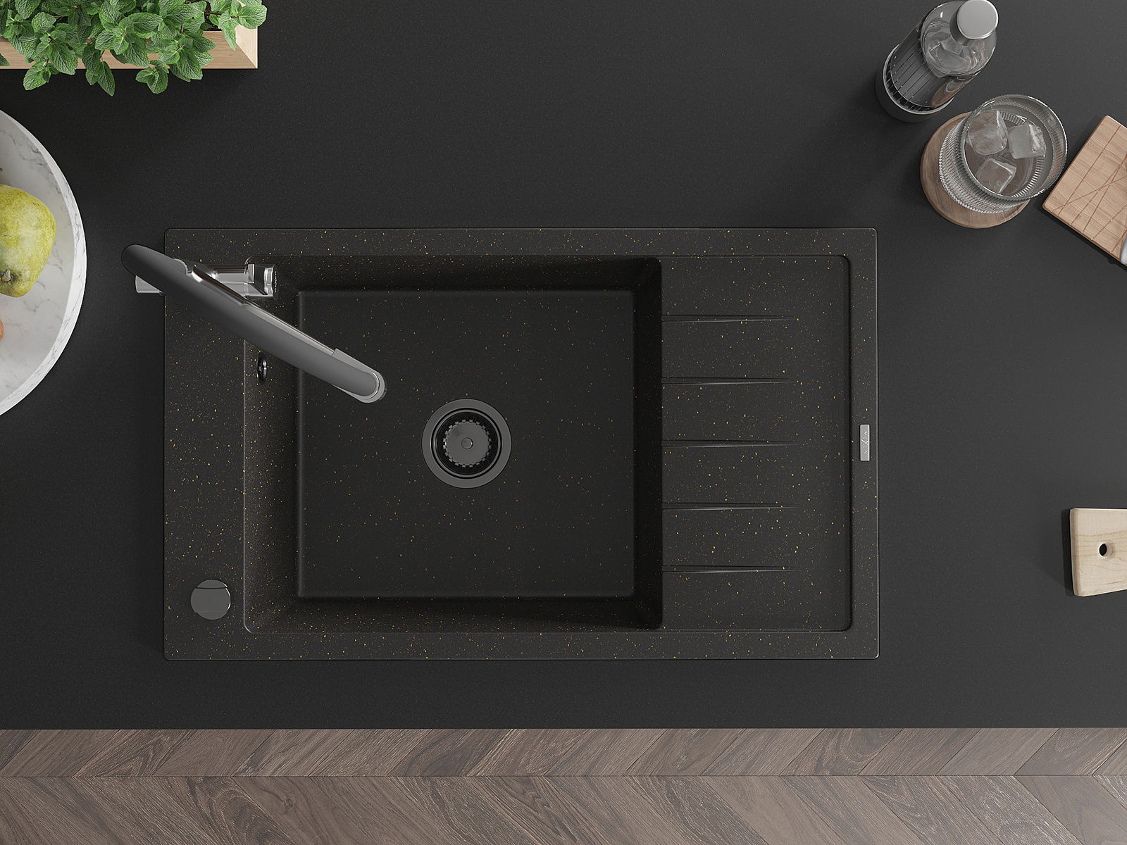 A mosogató kiváló minőségű gránitból készül. Ez egy elegáns és mindenekelőtt minden konyhához praktikus kiegészítés, stílusától függetlenül. A kiváló minőségű és a gránit tartósság biztosítja a sok éves használatát.