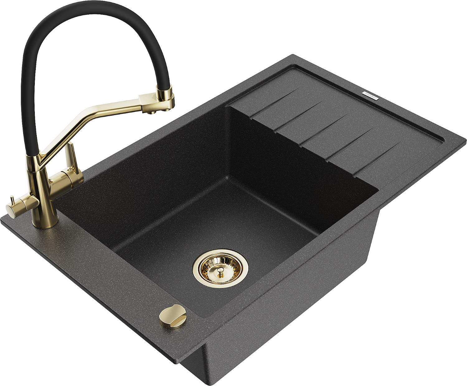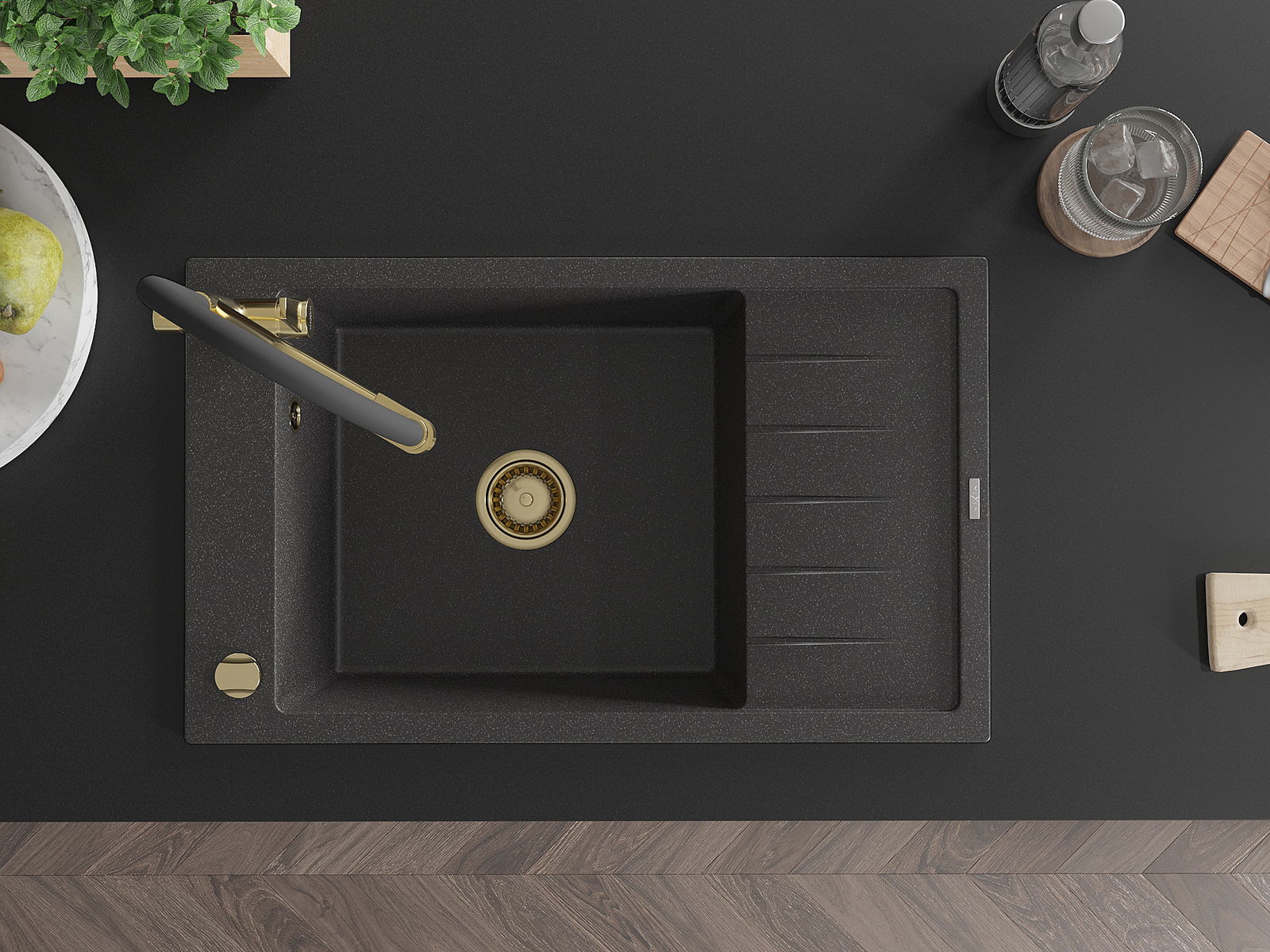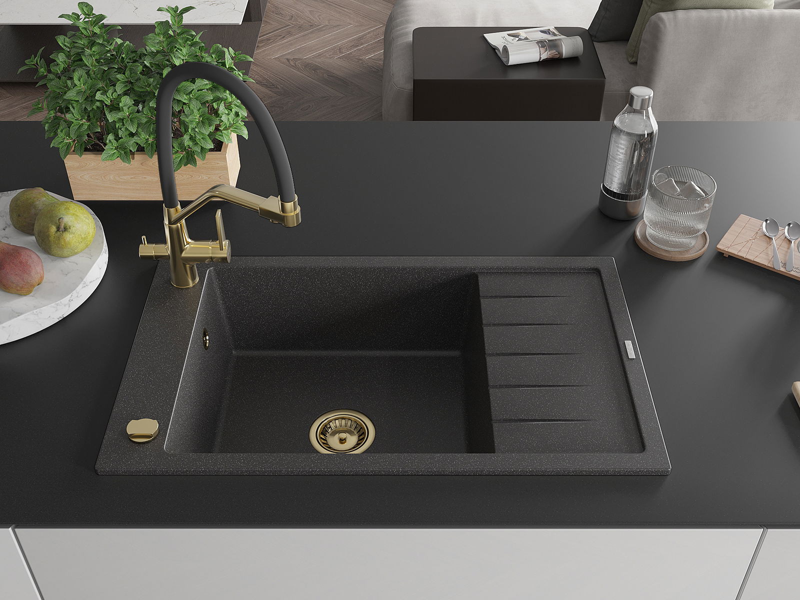 A mosogató magas minőségű gránitból készült. Elegáns, de mindenekelőtt praktikus kiegészítője minden konyhának, függetlenül annak stílusától. A gránit magas minősége és tartóssága hosszú távú használatot biztosít.