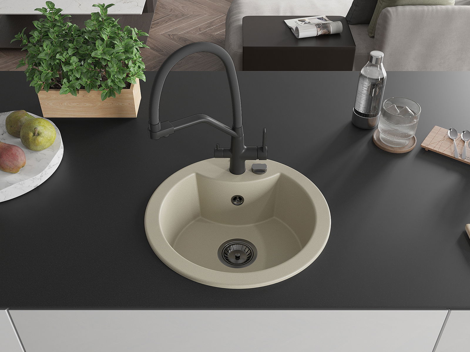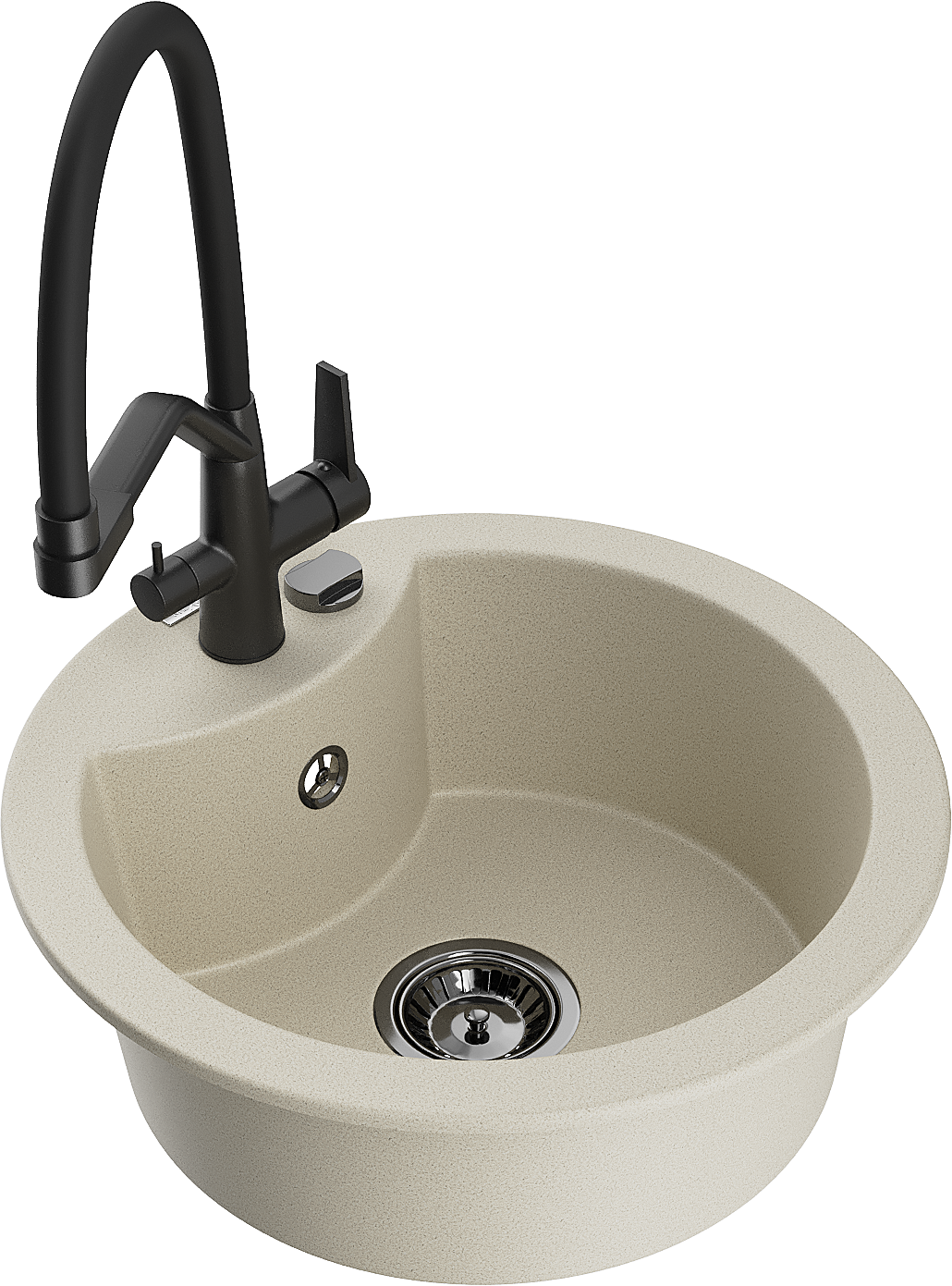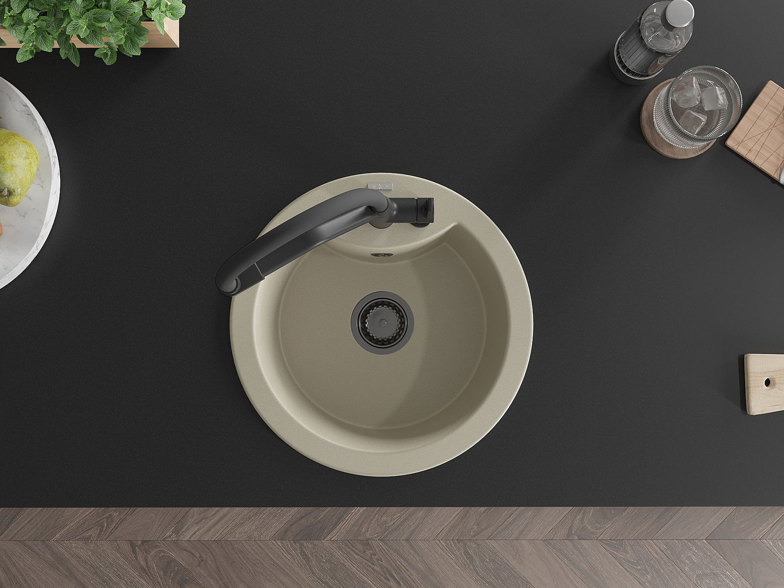 A mosogató kiváló minőségű gránitból készül. Ez egy elegáns és mindenekelőtt minden konyhához praktikus kiegészítés, stílusától függetlenül. A kiváló minőségű és a gránit tartósság biztosítja a sok éves használatát.