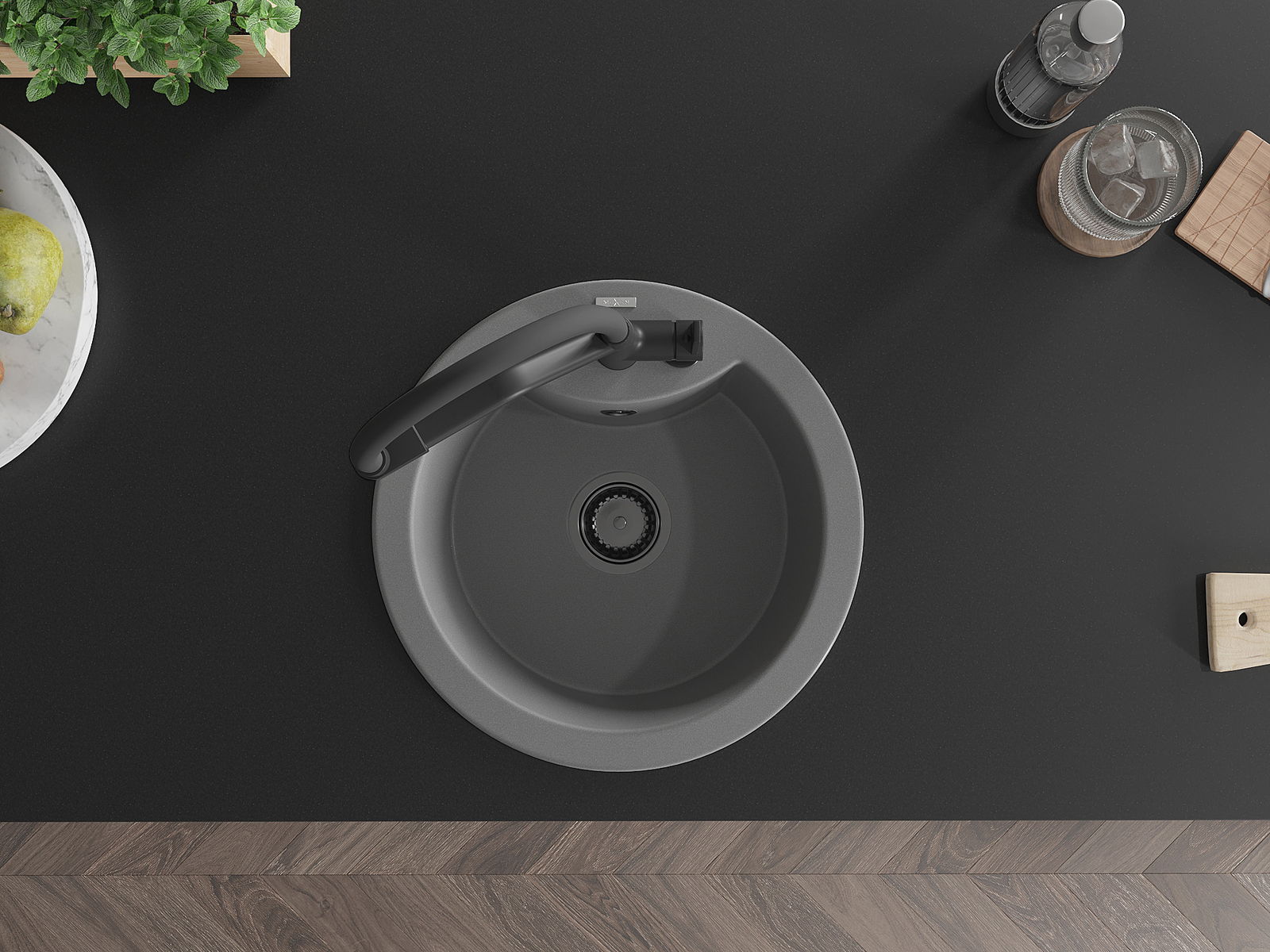 A mosogató kiváló minőségű gránitból készül. Ez egy elegáns és mindenekelőtt minden konyhához praktikus kiegészítés, stílusától függetlenül. A kiváló minőségű és a gránit tartósság biztosítja a sok éves használatát.