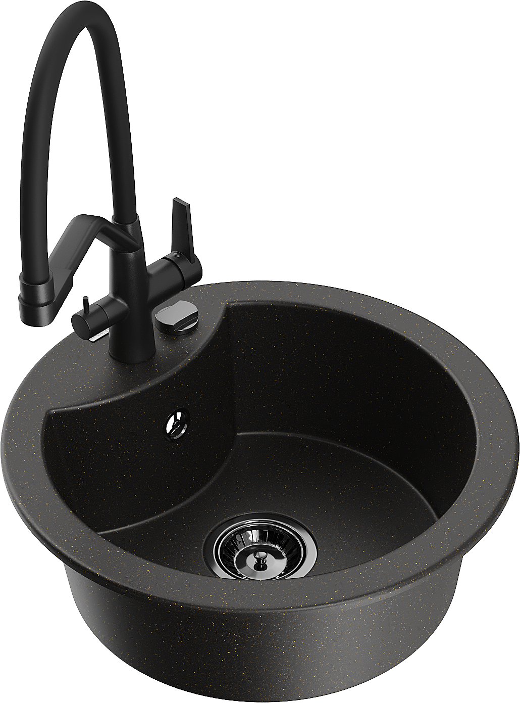Mexen Diego egymedencés gránit mosogató Duo konyhai csappal, fekete/arany metál - 6512-75-671701-70-B