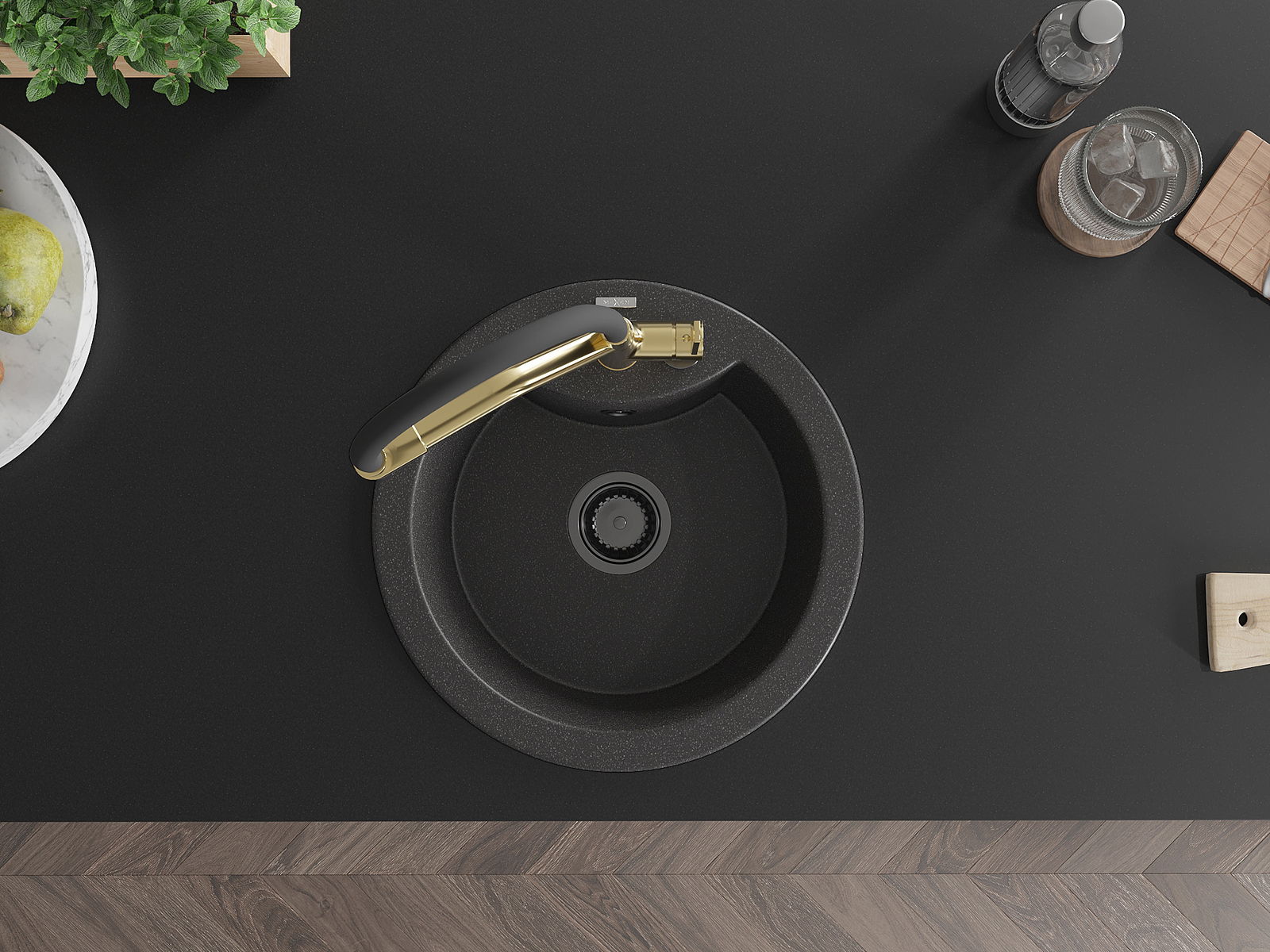 A mosogató kiváló minőségű gránitból készül. Ez egy elegáns és mindenekelőtt minden konyhához praktikus kiegészítés, stílusától függetlenül. A kiváló minőségű és a gránit tartósság biztosítja a sok éves használatát.