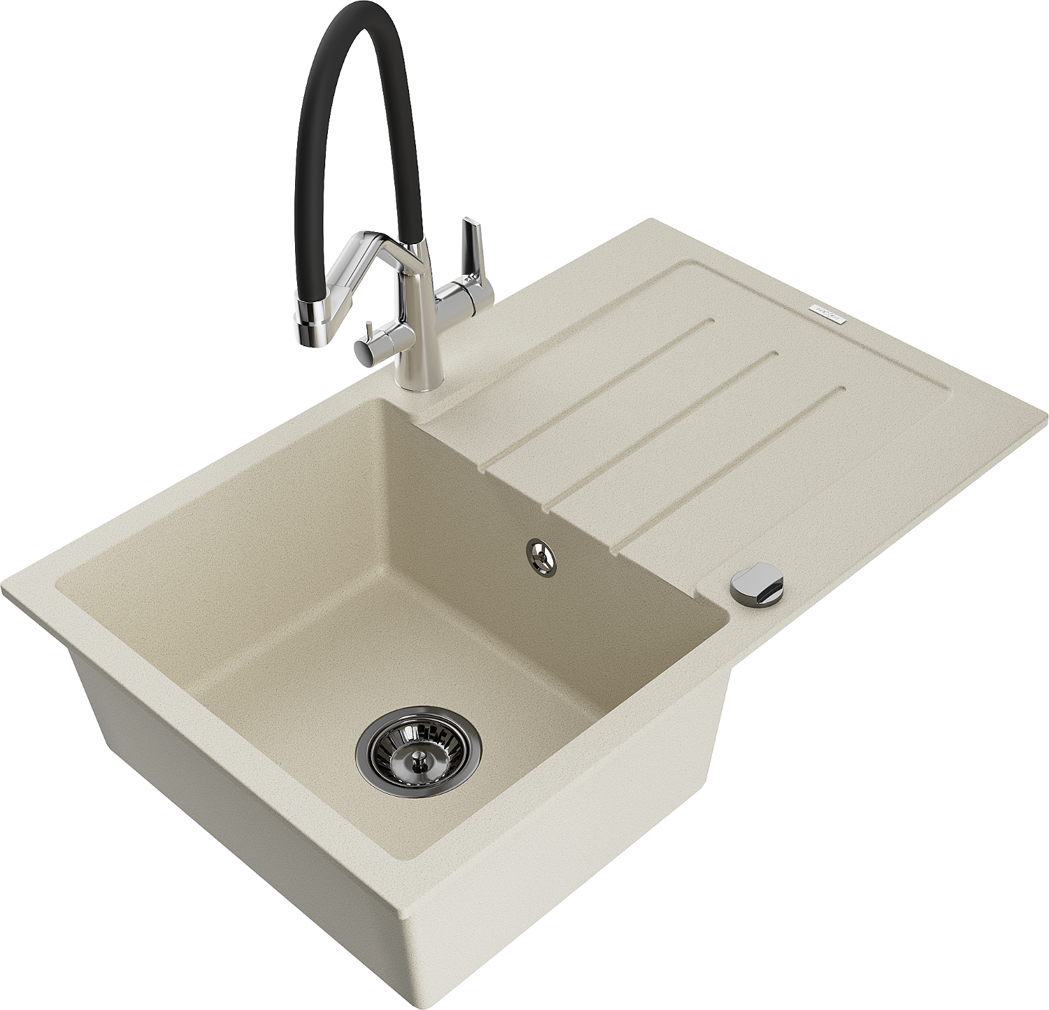 Mexen Bruno egymedencés gránit mosogató csepegtetővel és Duo konyhai csapteleppel, bézs - 6513-69-671701-07-B