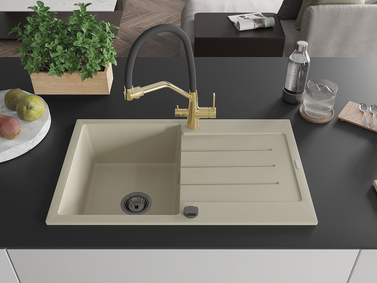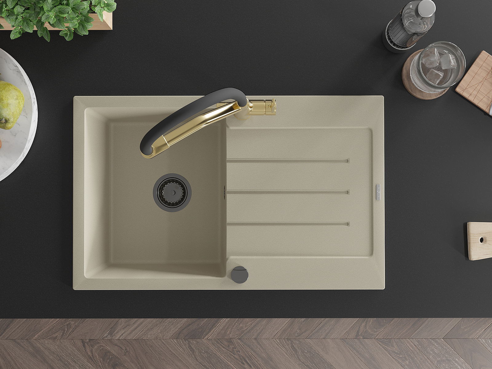 Mexen Bruno 1-medencés gránit mosogató csepegtetővel és Duo konyhai csapteleppel, bézs - 6513-69-671701-57-B