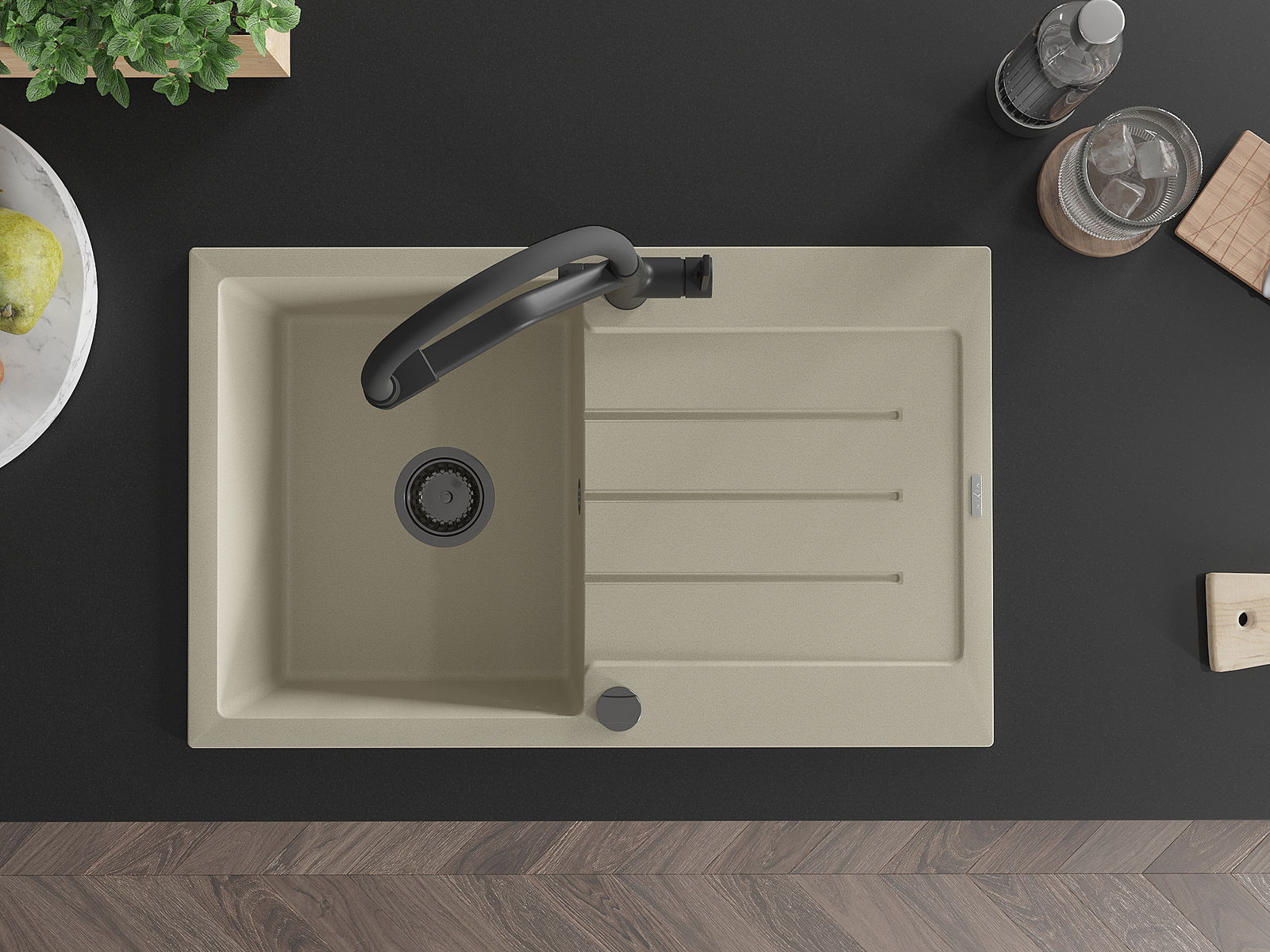 Mexen Bruno egymedencés gránit mosogató csepegtetővel és Duo konyhai csapteleppel, bézs - 6513-69-671701-70-B
