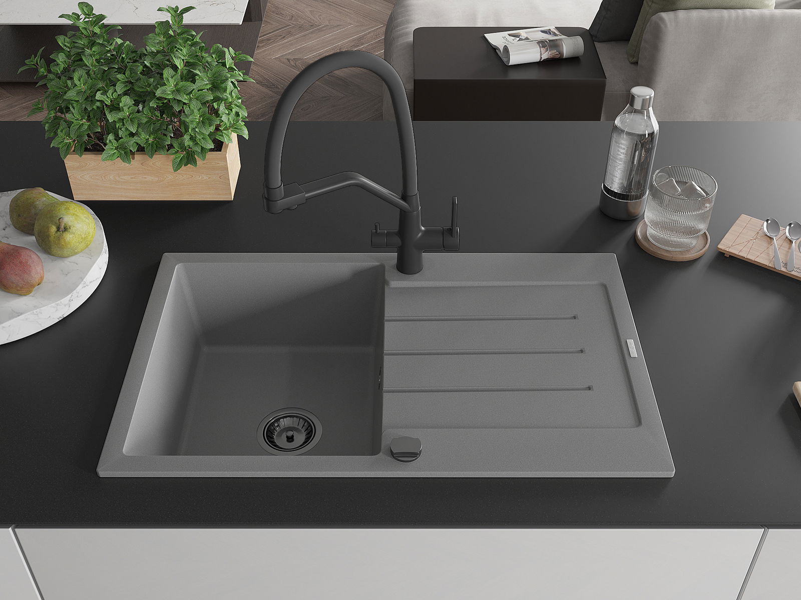 A mosogató kiváló minőségű gránitból készül. Ez egy elegáns és mindenekelőtt minden konyhához praktikus kiegészítés, stílusától függetlenül. A kiváló minőségű és a gránit tartósság biztosítja a sok éves használatát.