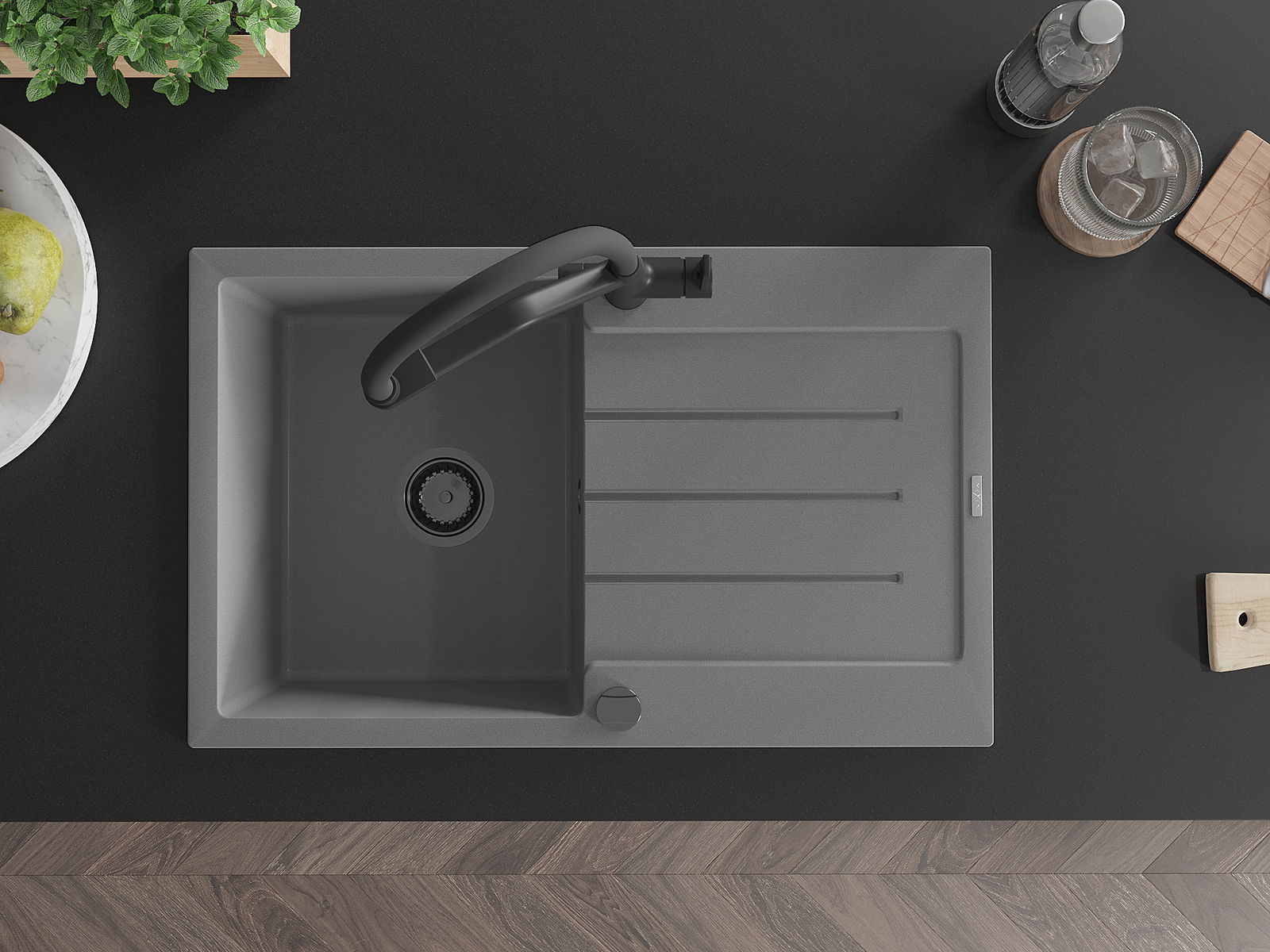 Mexen Bruno 1 rekeszes gránit mosogató csepegtetővel és Duo konyhacsappal, szürke - 6513-71-671701-70-B