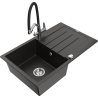 Mexen Bruno 1-medencés gránit mosogató elvezetővel és Duo konyhai csapteleppel, fekete pöttyös - 6513-76-671701-07