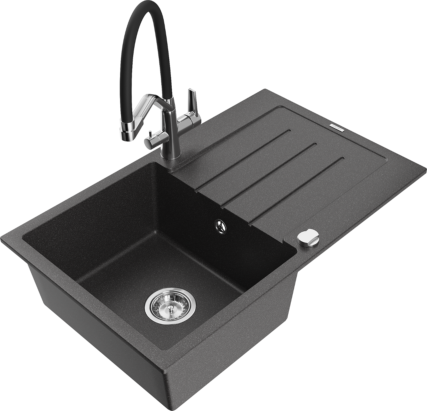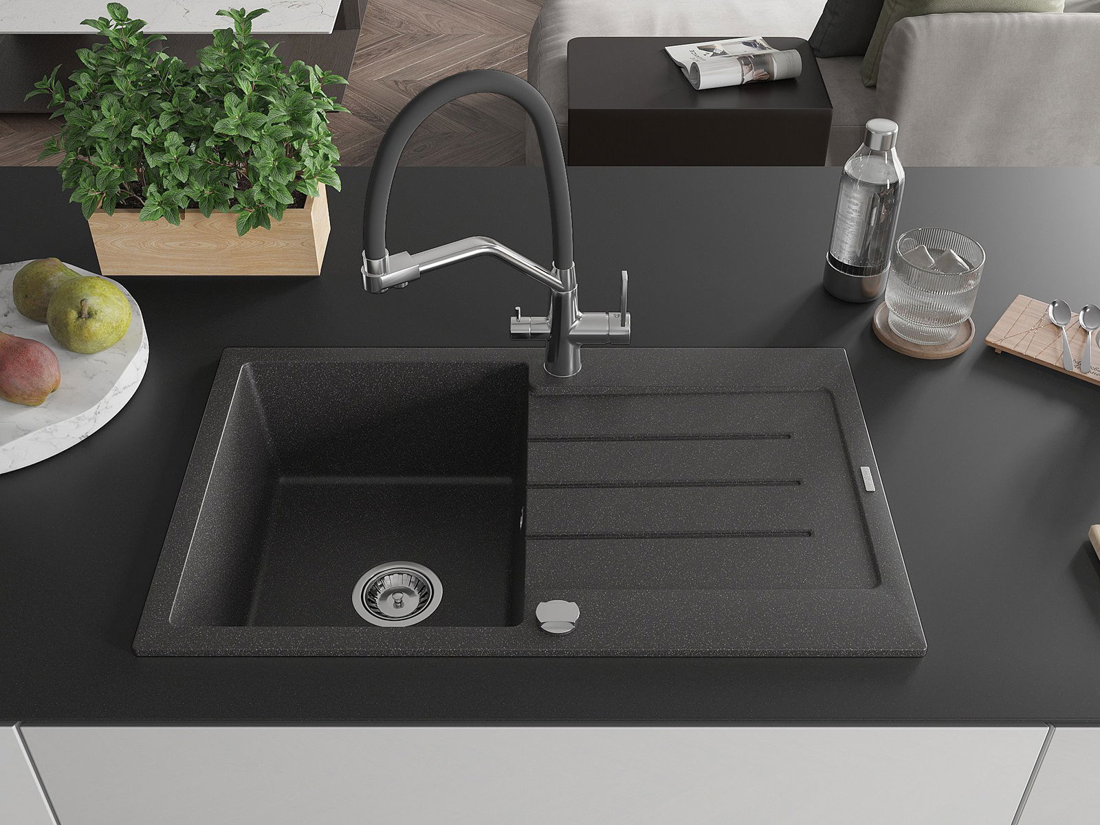 A mosogató kiváló minőségű gránitból készül. Ez egy elegáns és mindenekelőtt minden konyhához praktikus kiegészítés, stílusától függetlenül. A kiváló minőségű és a gránit tartósság biztosítja a sok éves használatát.
