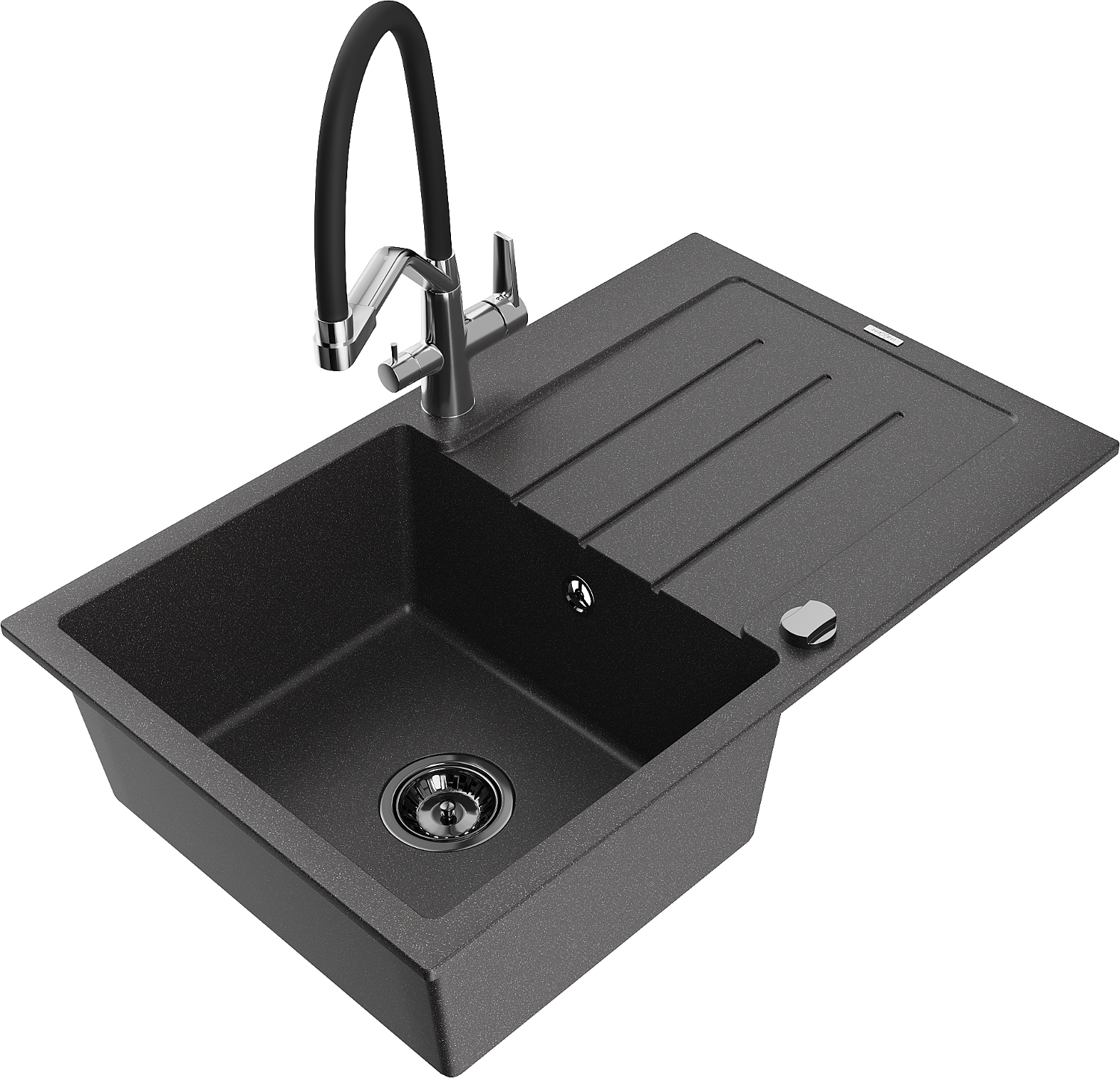 A mosogató kiváló minőségű gránitból készül. Ez egy elegáns és mindenekelőtt minden konyhához praktikus kiegészítés, stílusától függetlenül. A kiváló minőségű és a gránit tartósság biztosítja a sok éves használatát.
