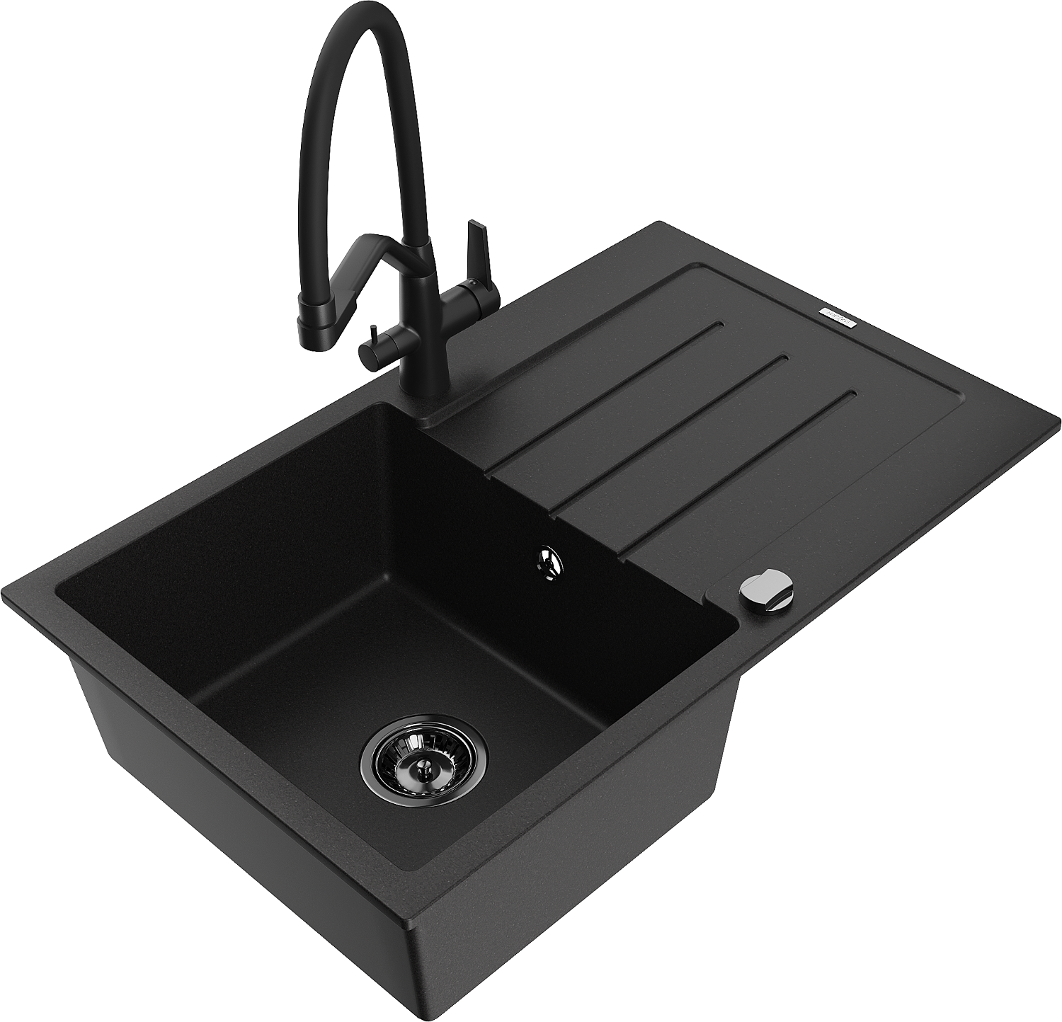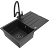Mexen Bruno 1 rekeszes gránit mosogató csepegtetővel és Duo konyhai csappal, fekete - 6513-77-671701-70-B