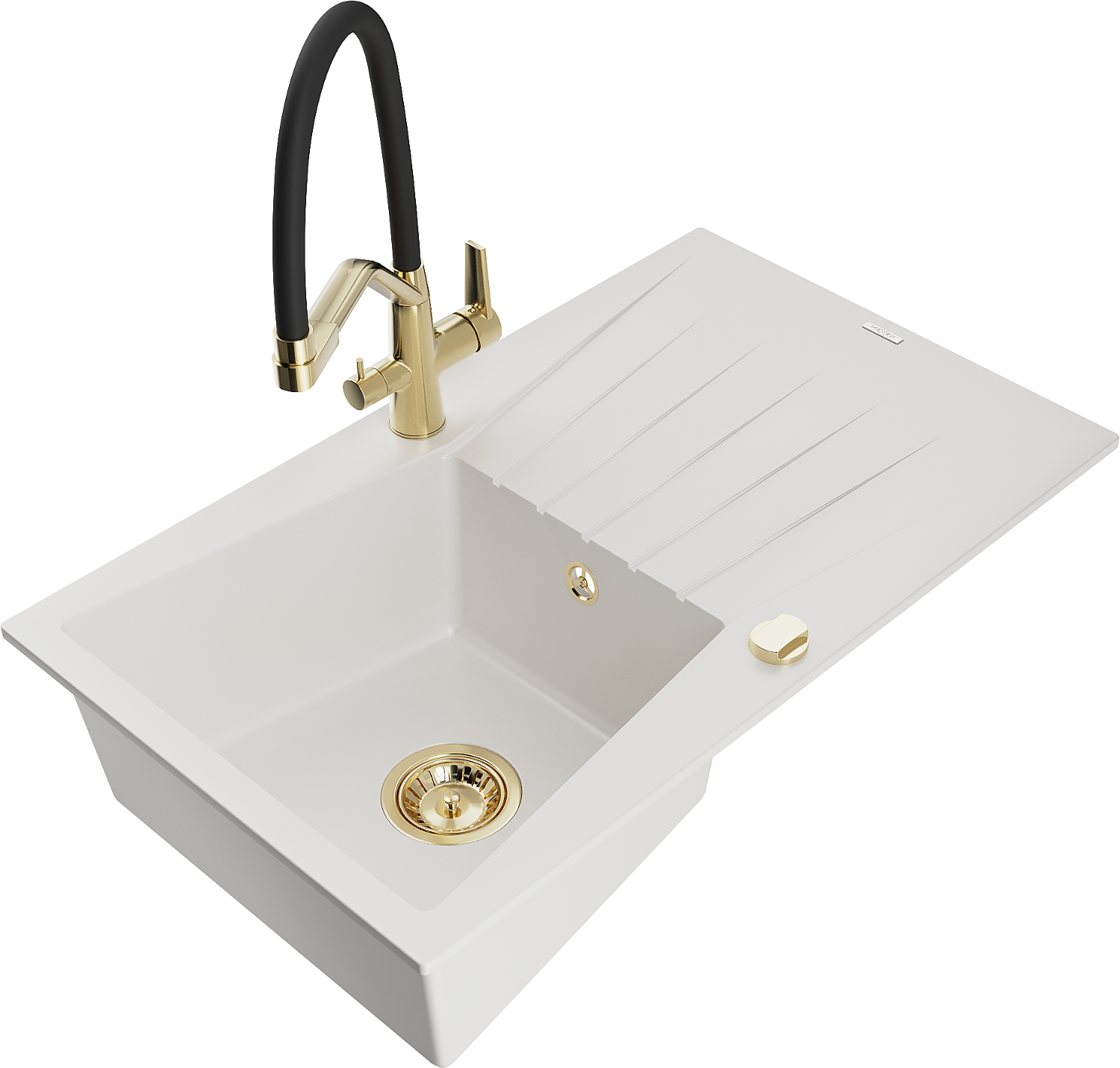 Mexen Cesar 1-medencés gránit mosogató lefolyóval és konyhai csappal Duo, fehér - 6514-20-671701-57-G