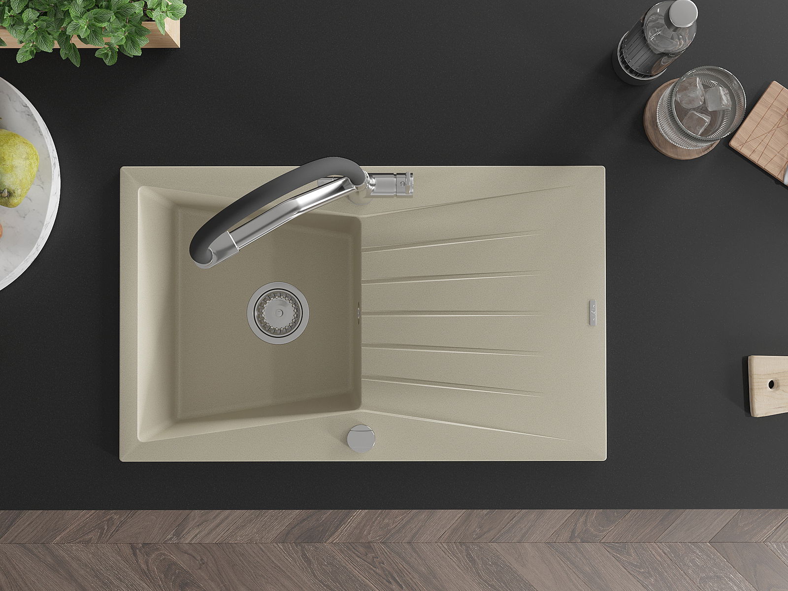 Mexen Cesar 1-medencés gránit mosogató lefolyóval és Duo konyhai csappal, bézs - 6514-69-671701-07