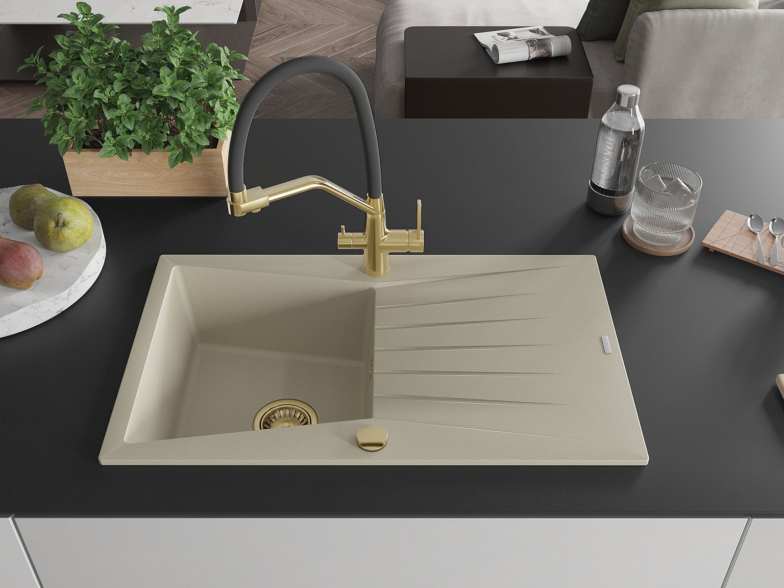 Mexen Cesar 1-medencés gránit mosogató csepegtetővel és Duo konyhai csapteleppel, bézs - 6514-69-671701-57-G