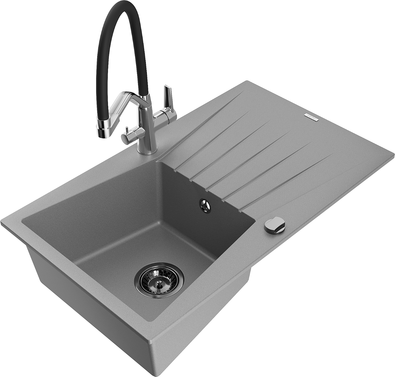 A mosogató kiváló minőségű gránitból készül. Ez egy elegáns és mindenekelőtt minden konyhához praktikus kiegészítés, stílusától függetlenül. A kiváló minőségű és a gránit tartósság biztosítja a sok éves használatát.