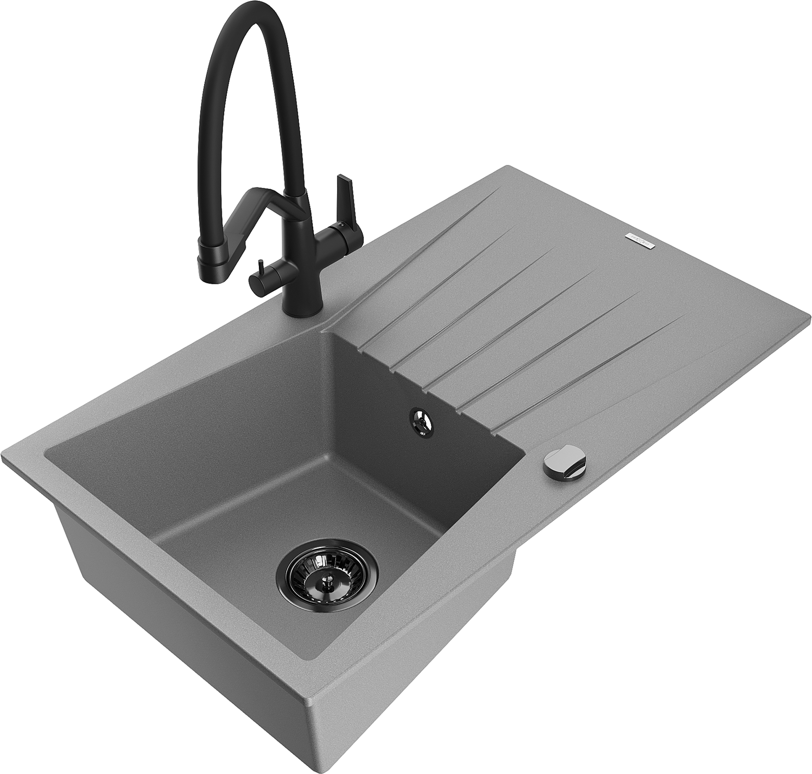 A mosogató magas minőségű gránitból készült. Elegáns, de mindenekelőtt praktikus kiegészítője minden konyhának, függetlenül annak stílusától. A gránit magas minősége és tartóssága hosszú távú használatot biztosít.