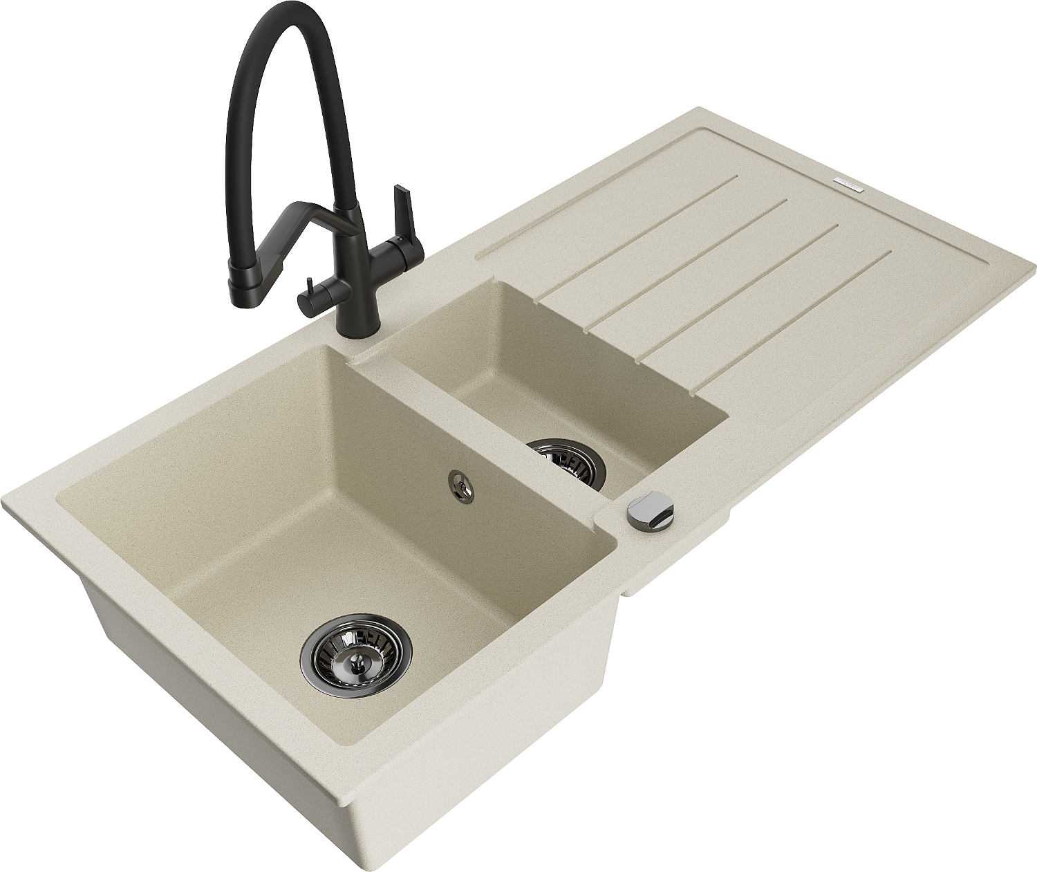 Mexen Andres 1,5 rekeszes gránit mosogató csepptálcával és Duo konyhai csappal, bézs - 6515-69-671701-70-B