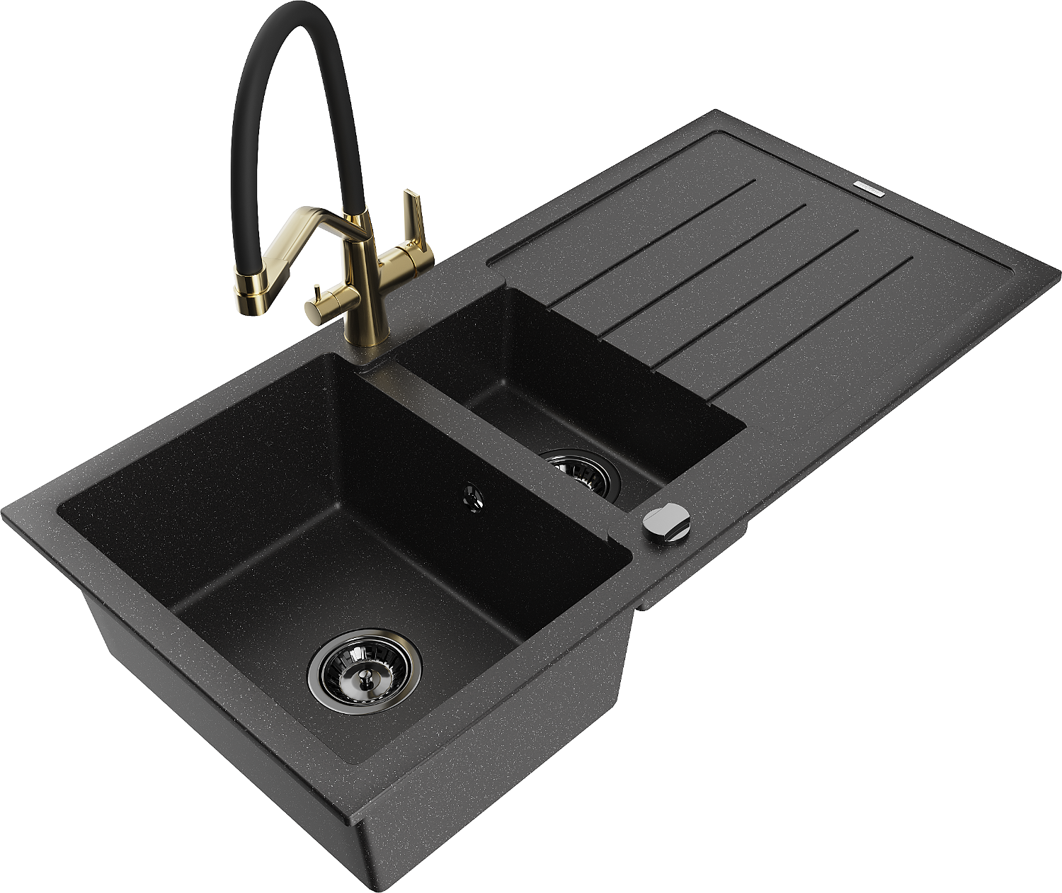Mexen Andres 1,5 rekeszes gránit mosogató lefolyóval és Duo konyhai csapteleppel, fekete/ezüst - 6515-73-671701-57-B
