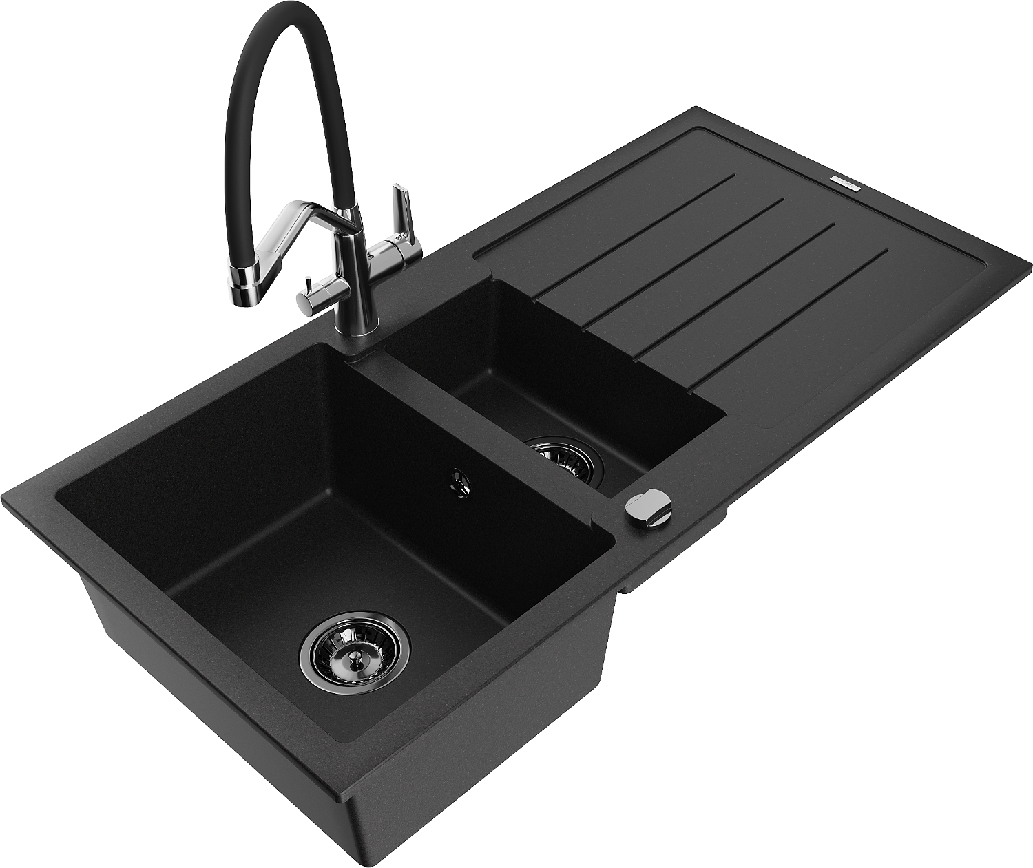 Mexen Andres gránit mosogató 1,5 rekeszes lecsepegtetővel és Duo konyhai csapteleppel, fekete - 6515-77-671701-07-B