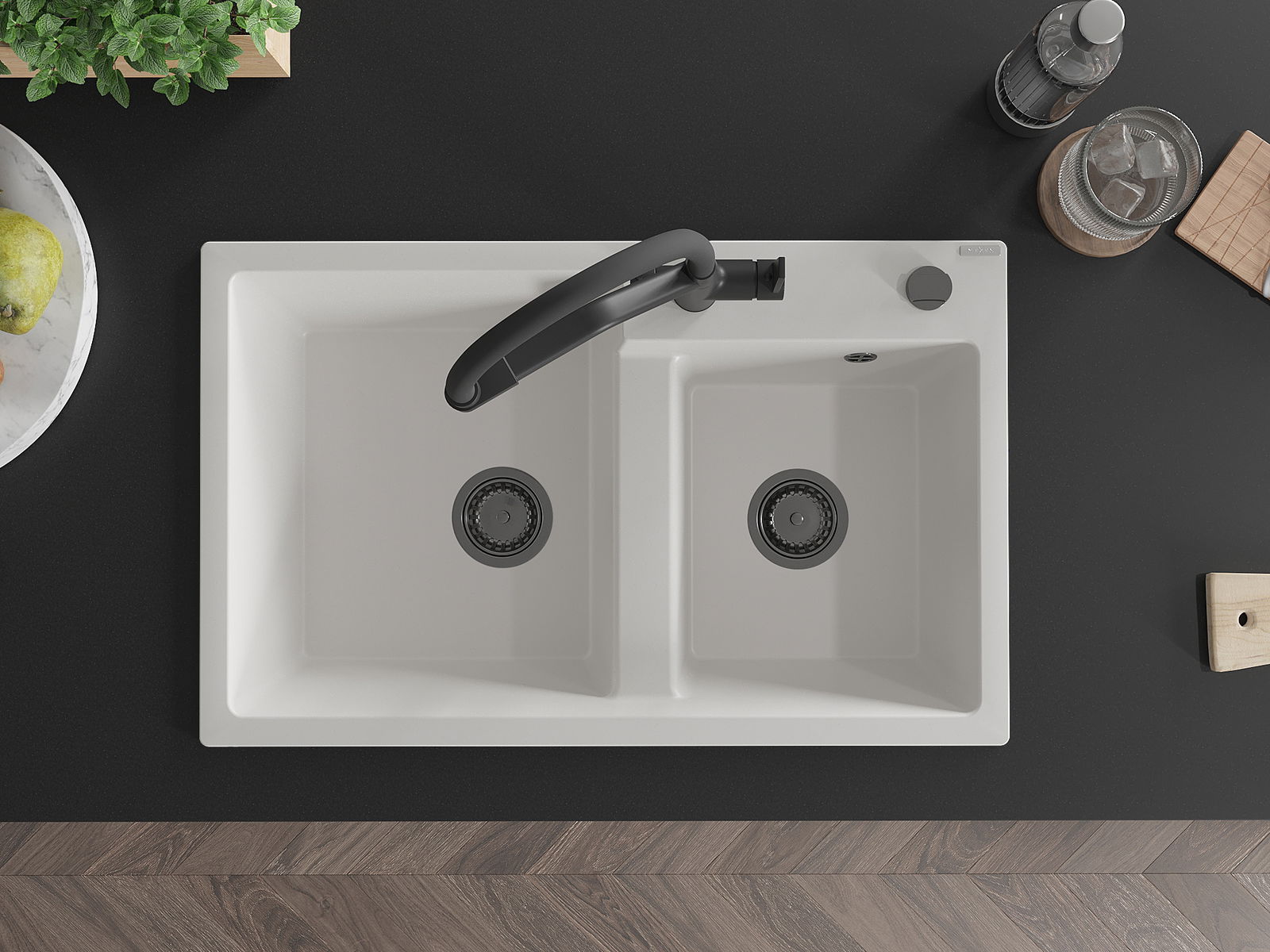 A mosogató magas minőségű gránitból készült. Elegáns, de mindenekelőtt praktikus kiegészítője minden konyhának, függetlenül annak stílusától. A gránit magas minősége és tartóssága hosszú távú használatot biztosít.