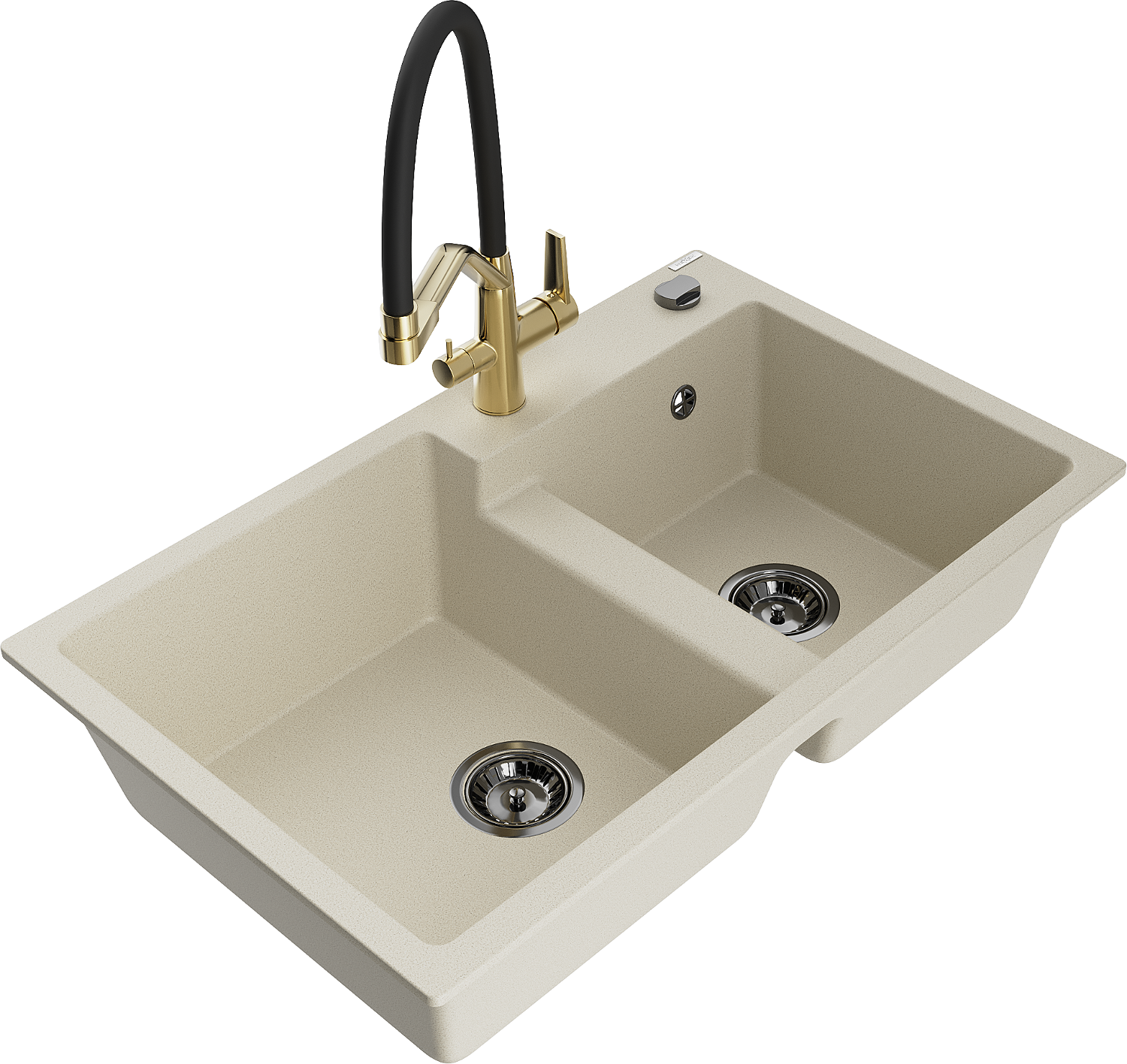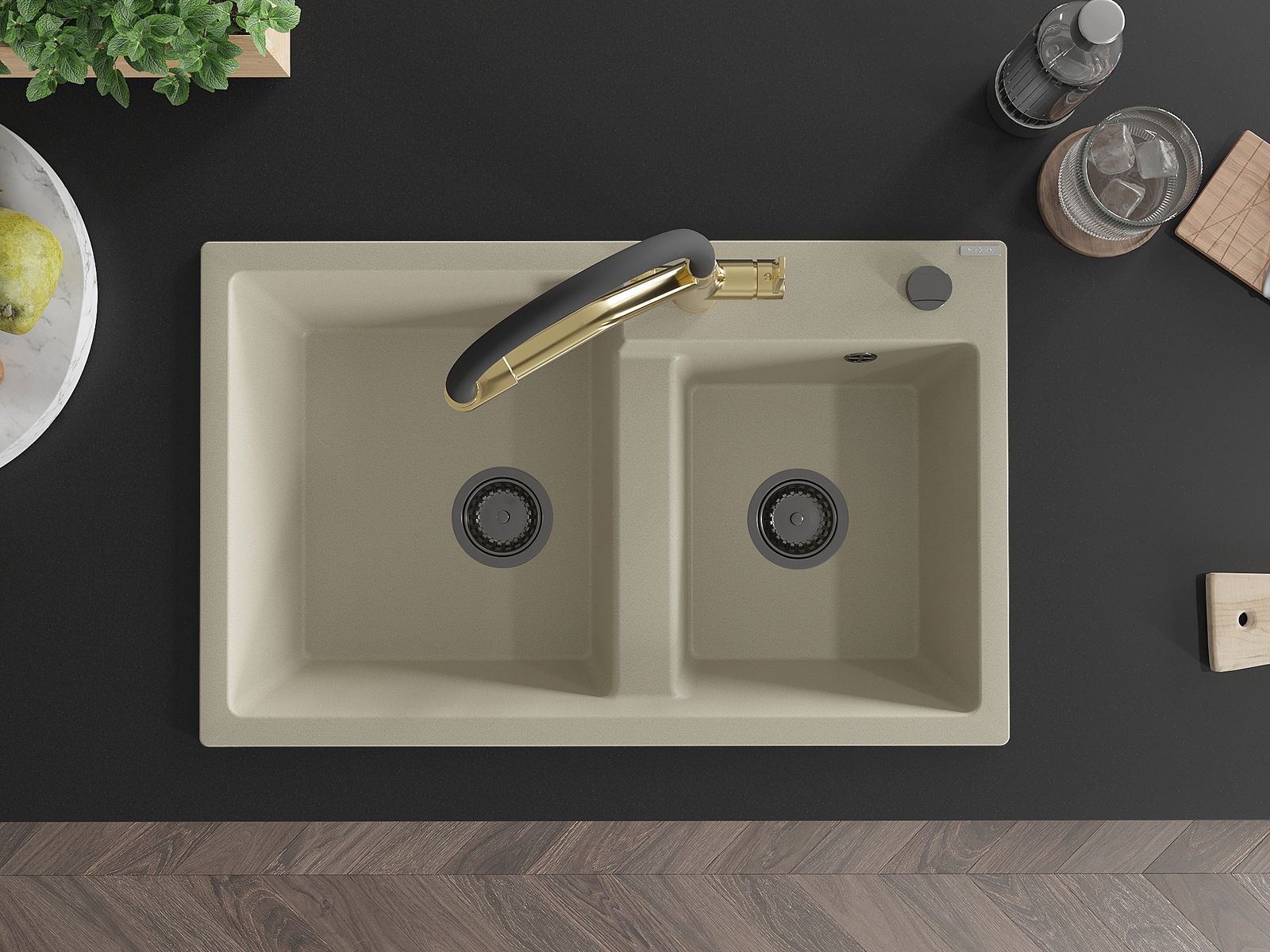 Mexen Tomas kétkamrás gránit mosogató konyhai csapteleppel Duo, bézs - 6516-69-671701-57-B