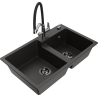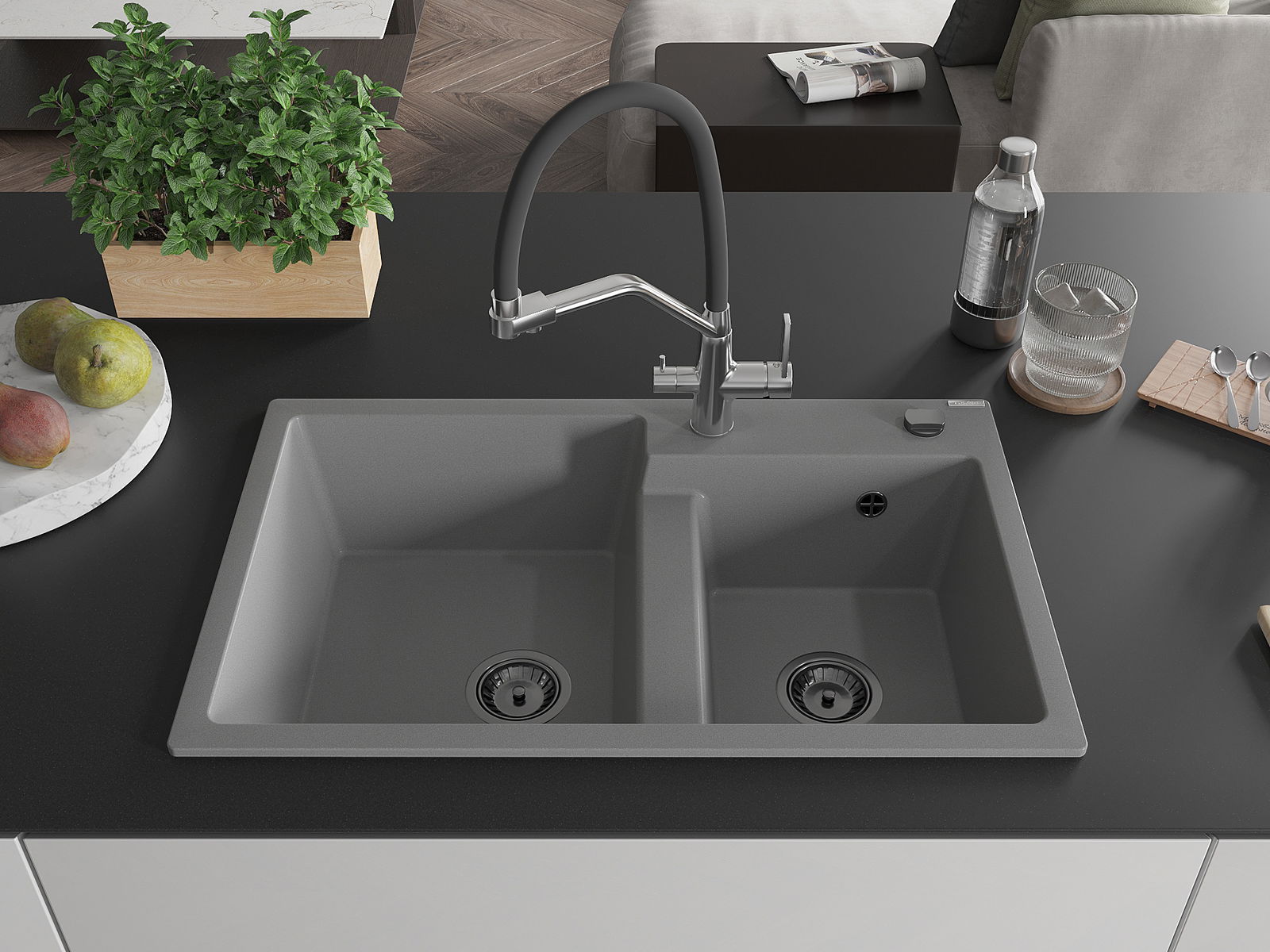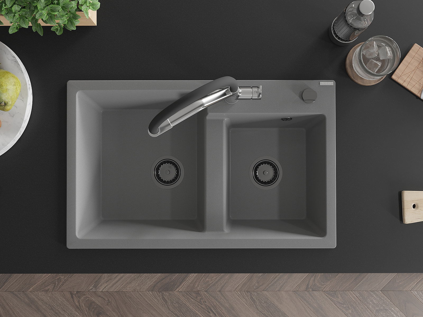 Mexen Tomas 2 rekeszes gránit mosogató Duo konyhai csapteleppel, szürke - 6516-71-671701-07-B