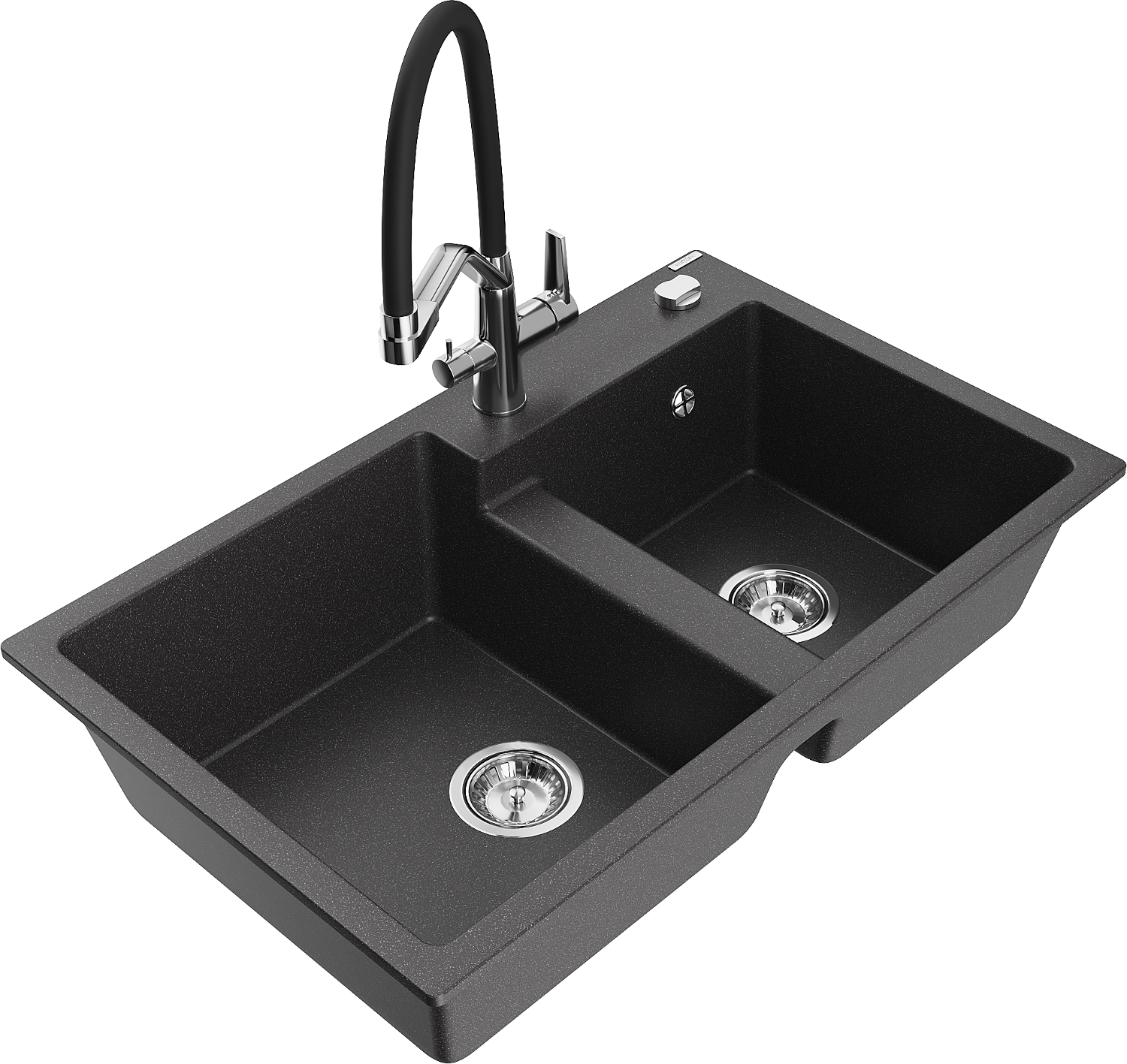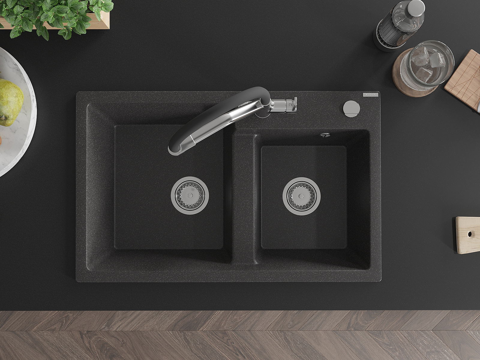 A mosogató magas minőségű gránitból készült. Elegáns, de mindenekelőtt praktikus kiegészítője minden konyhának, függetlenül annak stílusától. A gránit magas minősége és tartóssága hosszú távú használatot biztosít.