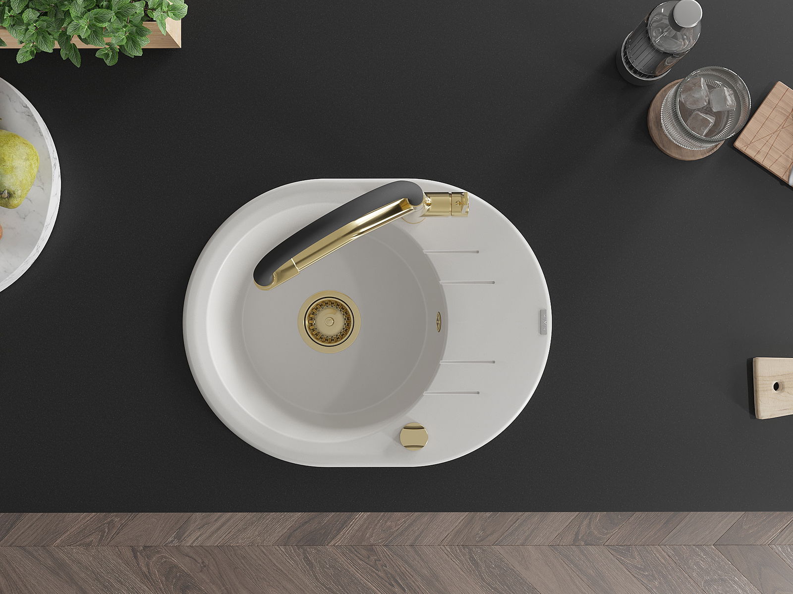 A mosogató kiváló minőségű gránitból készül. Ez egy elegáns és mindenekelőtt minden konyhához praktikus kiegészítés, stílusától függetlenül. A kiváló minőségű és a gránit tartósság biztosítja a sok éves használatát.