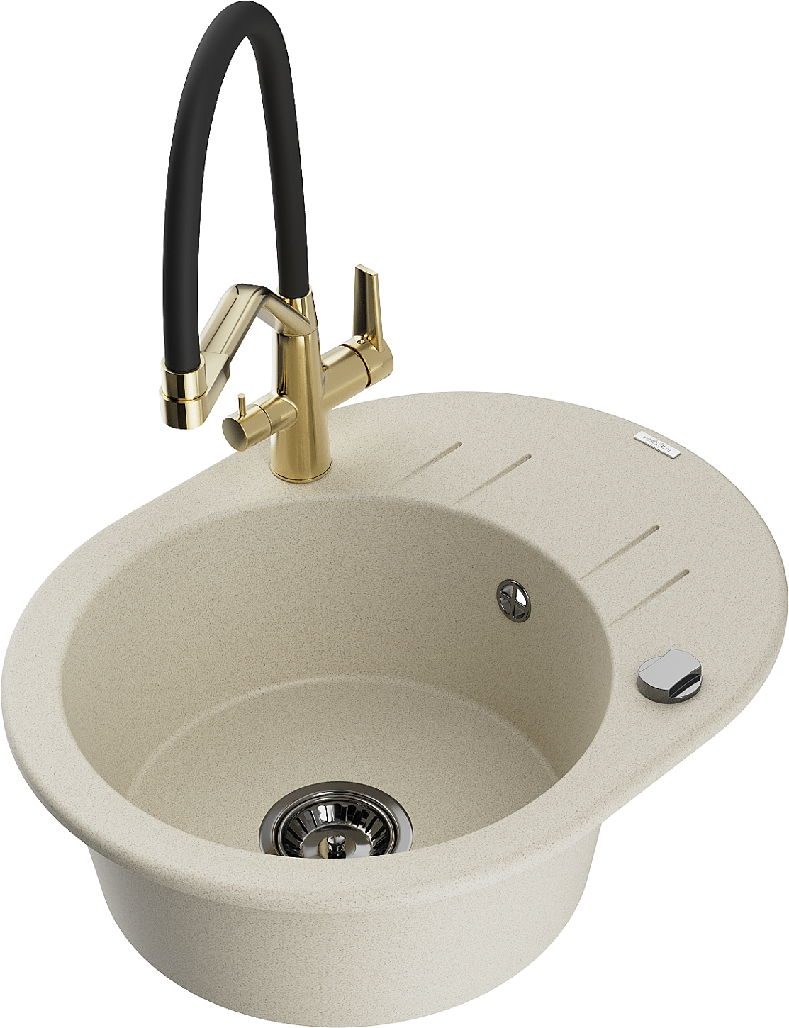 Mexen Kevin 1 rekeszes gránit mosogató Duo konyhai csapteleppel, bézs - 6517-69-671701-57-B
