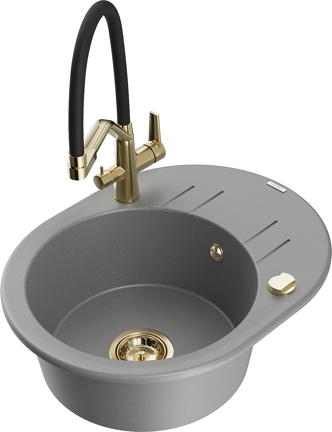 Mexen Kevin egymedencés gránit mosogató Duo konyhai csapteleppel, szürke - 6517-71-671701-57-G
