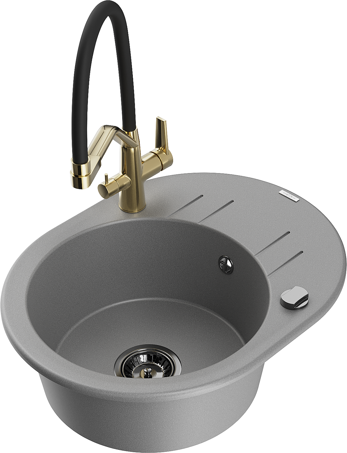 Mexen Kevin gránit mosogató 1-medencés konyhai csapteleppel Duo, szürke - 6517-71-671701-57-B