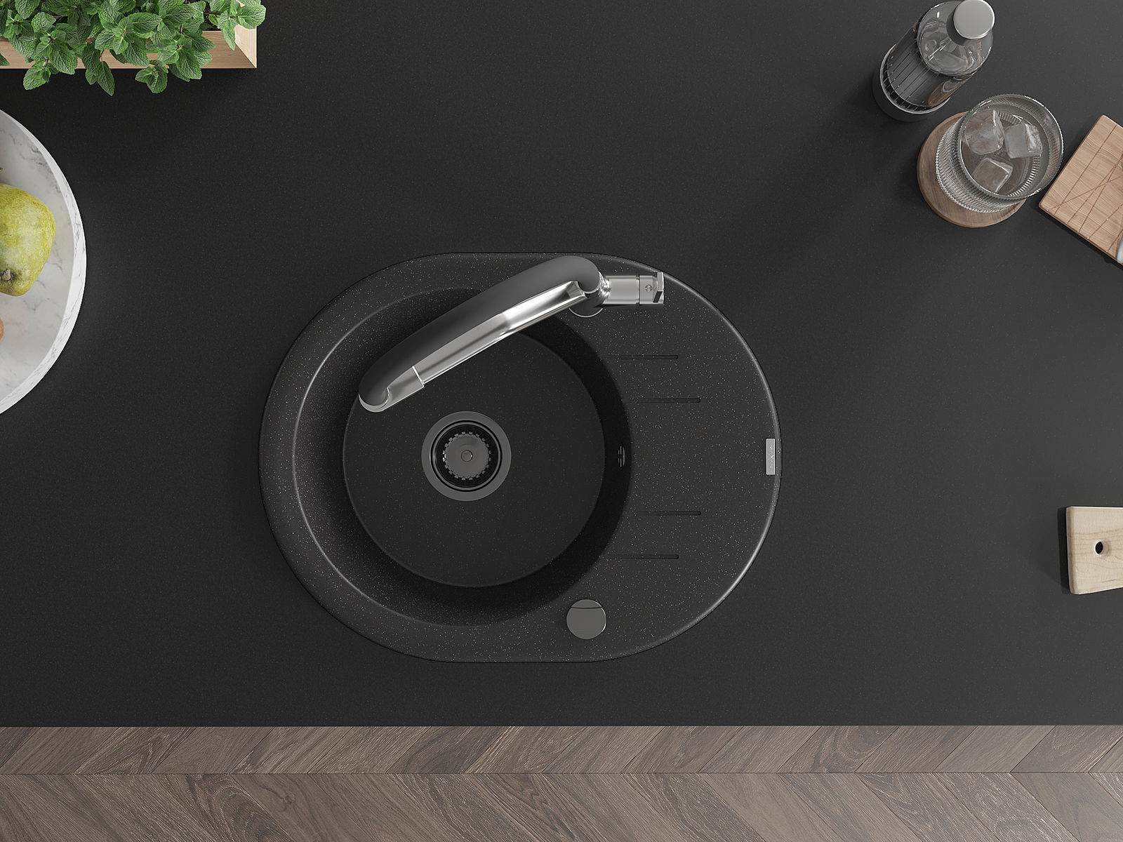 A mosogató kiváló minőségű gránitból készül. Ez egy elegáns és mindenekelőtt minden konyhához praktikus kiegészítés, stílusától függetlenül. A kiváló minőségű és a gránit tartósság biztosítja a sok éves használatát.