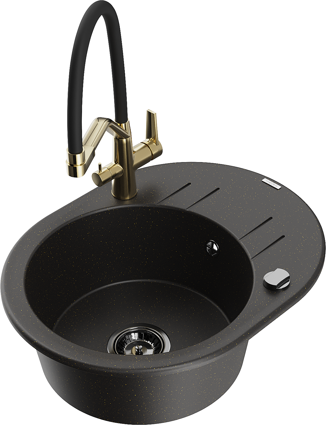 Mexen Kevin gránit mosogató 1-medencés konyhai csapteleppel Duo, fekete/arany metál - 6517-75-671701-57-B