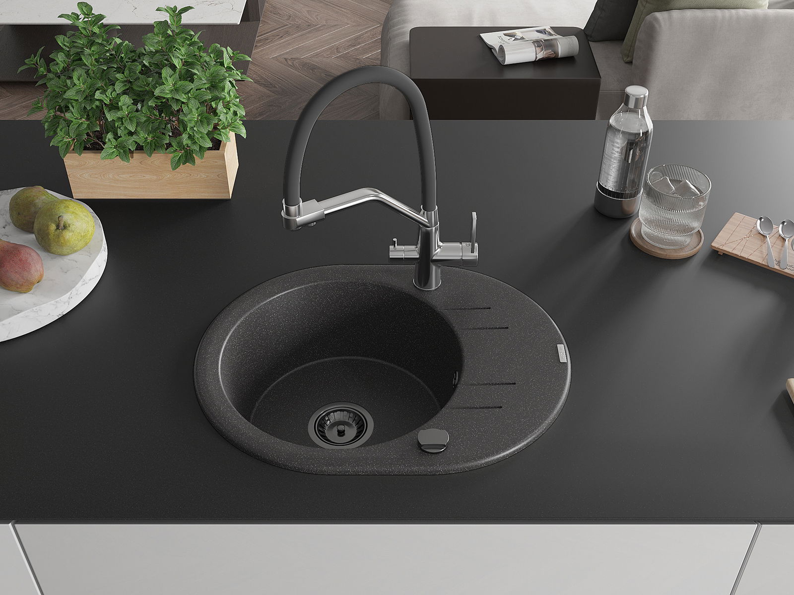 A mosogató magas minőségű gránitból készült. Elegáns, de mindenekelőtt praktikus kiegészítője minden konyhának, függetlenül annak stílusától. A gránit magas minősége és tartóssága hosszú távú használatot biztosít.